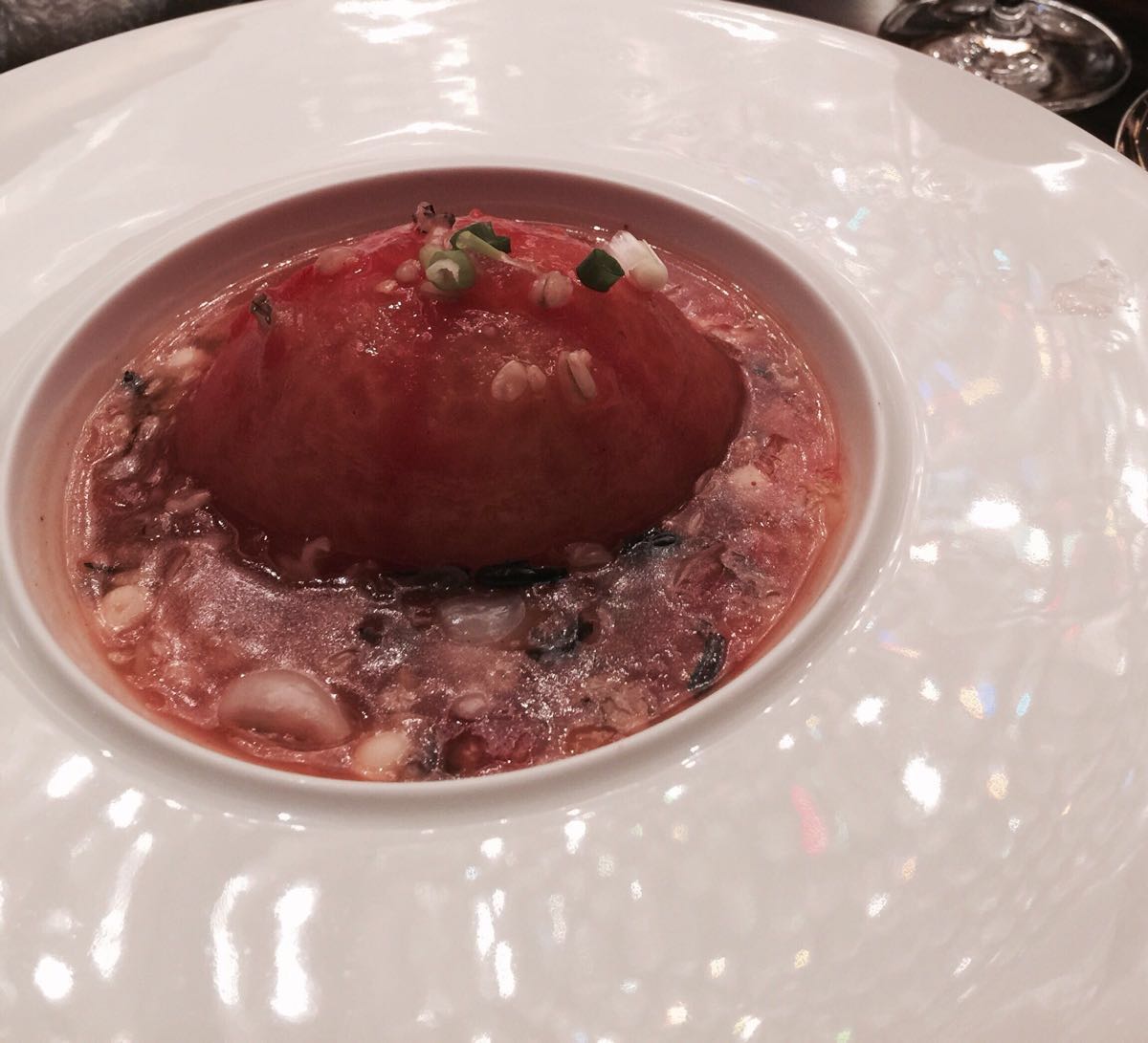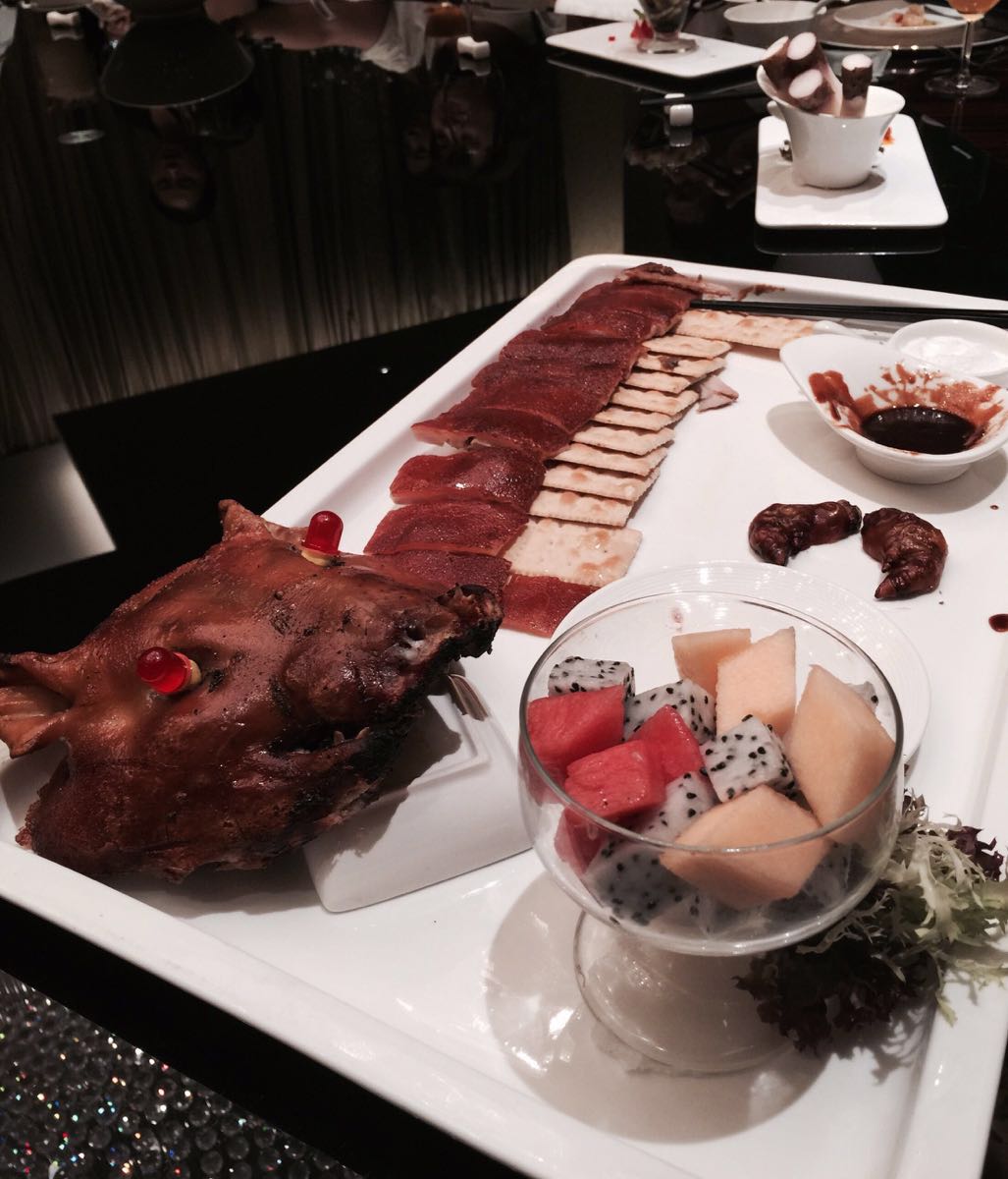 这次陪老公来广州参加保健食品展,做酵素推广活。今天宴请日本厂方吃饭,威斯汀做的菜品确实与众不同啊!全只烤乳猪与众不同的吃饭不是用薄饼包的而是用梳打饼干配乳猪皮,意想不到的脆香弥漫在唇齿之间,大赞啊!还有脆皮叉烧是我吃到过的最靓的叉烧了,皮脆脆的、肉嫩嫩哒,跟烤乳猪有的一拼的实力,厨师的创意更加赞!还有核桃酥也是蛮特别的椒盐口味,但是却不同于以前吃过的点心,真是创意点亮生活的菜品!红酒甜菜根配法式香煎鹅肝、番茄五谷杂粮烩羹、澳洲和牛牛肋骨配卤水目鱼片,大家吃的不亦乐乎⋯⋯浅野院长特别点名要吃烤乳猪,昨天已经吃过一次了,说今天威斯汀的味道更加好吃,我也是醉了⋯⋯日本人怎么那么爱吃烤乳猪呢??