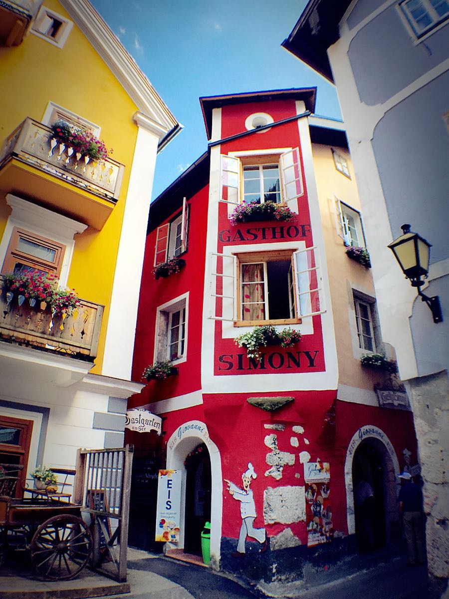 ...房子每一幢都很漂亮,五颜六色的,这家店的外墙是红色的,门口还有花装饰,强烈建议在小镇上住一晚上在小镇的中央广场附近,哈尔斯塔特的房子每一幢都很漂亮,五颜六色的,这家店的外墙是红色的,门口还有花装饰,强烈建议在小镇上住一晚上。
