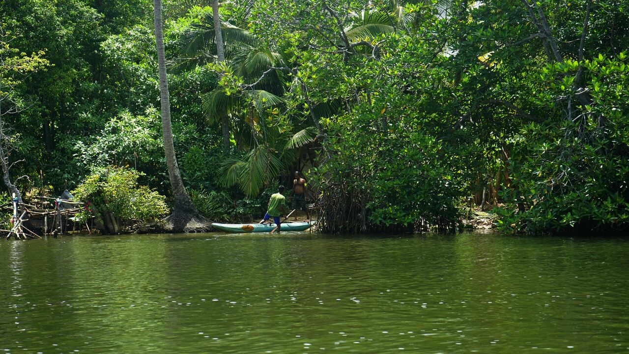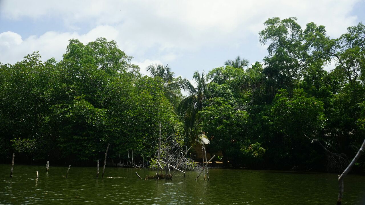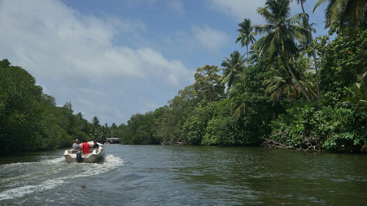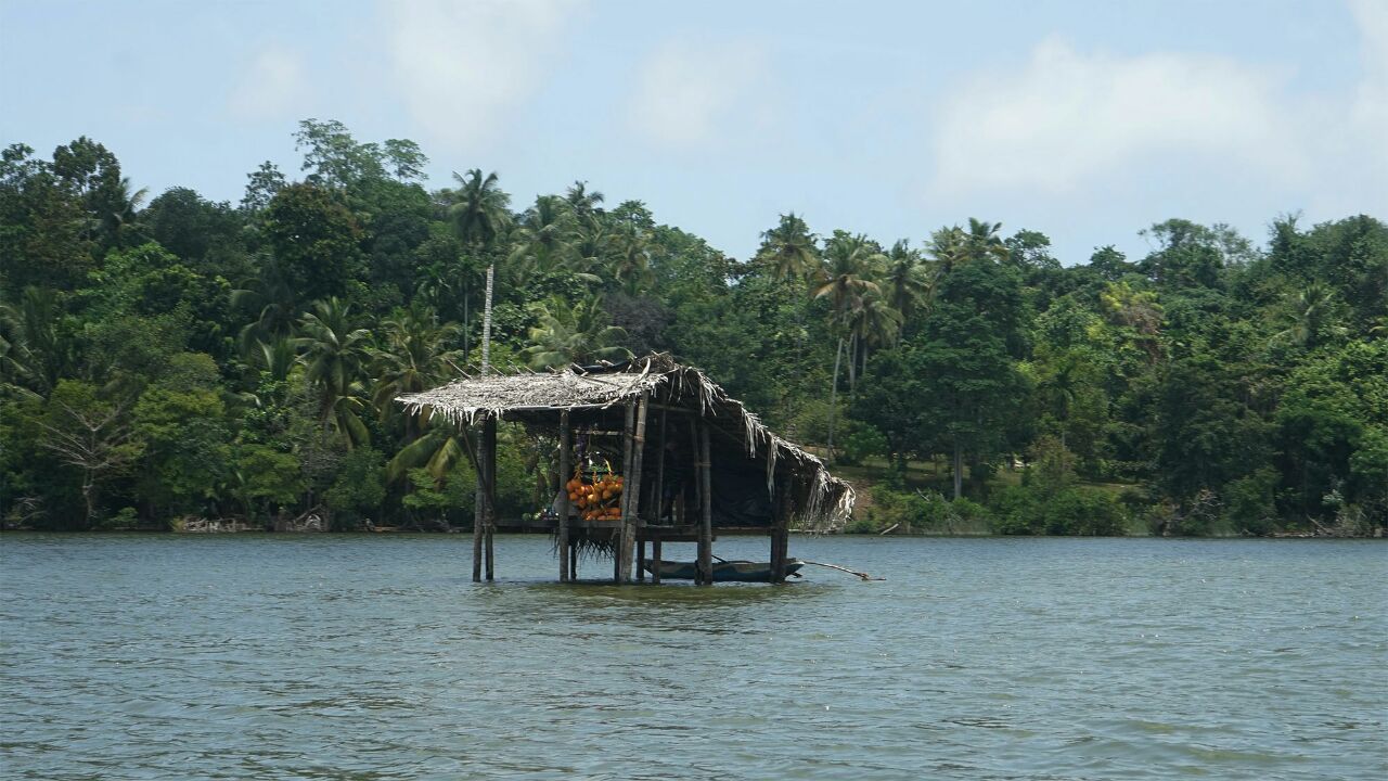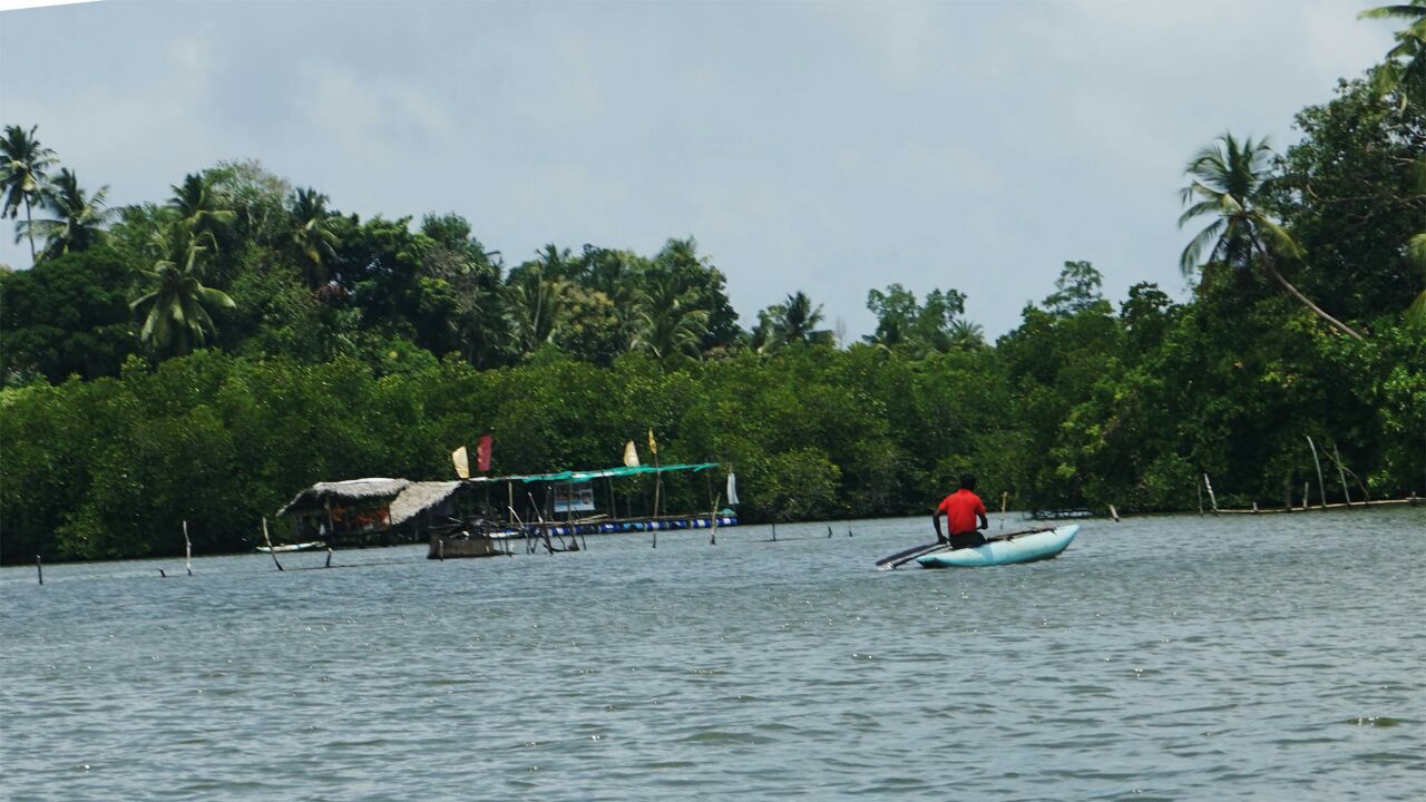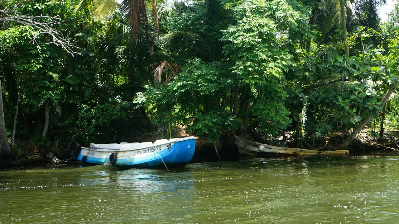 本托塔附近的马杜河,是河水流入印度洋入海口处的一个泻湖,我们乘船绕湖一周,见到满眼常绿的热带植物,船穿过一群褐色根系时,导游告知这就红树林,有点名不符实,据说不少的野生动物,我们只见到南洋大蜥蜴和一只猫头鹰,余者缘分不够,没有见到。还有水中水果铺、斯里兰卡特有的两头翘细长的小舟,也可看看。