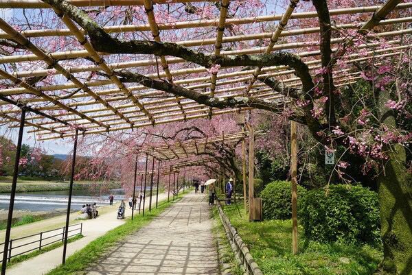 这里种植的是垂枝樱 然后用竹条搭起一个美丽的樱花隧道。是一个特别的赏樱花的地方。也不用特意过去是一个特别的赏樱花的地方。这里种植的是垂枝樱 然后用竹条搭起一个美丽的樱花隧道。人不算多。路过可以去看看。也不用特意过去。交通方便。