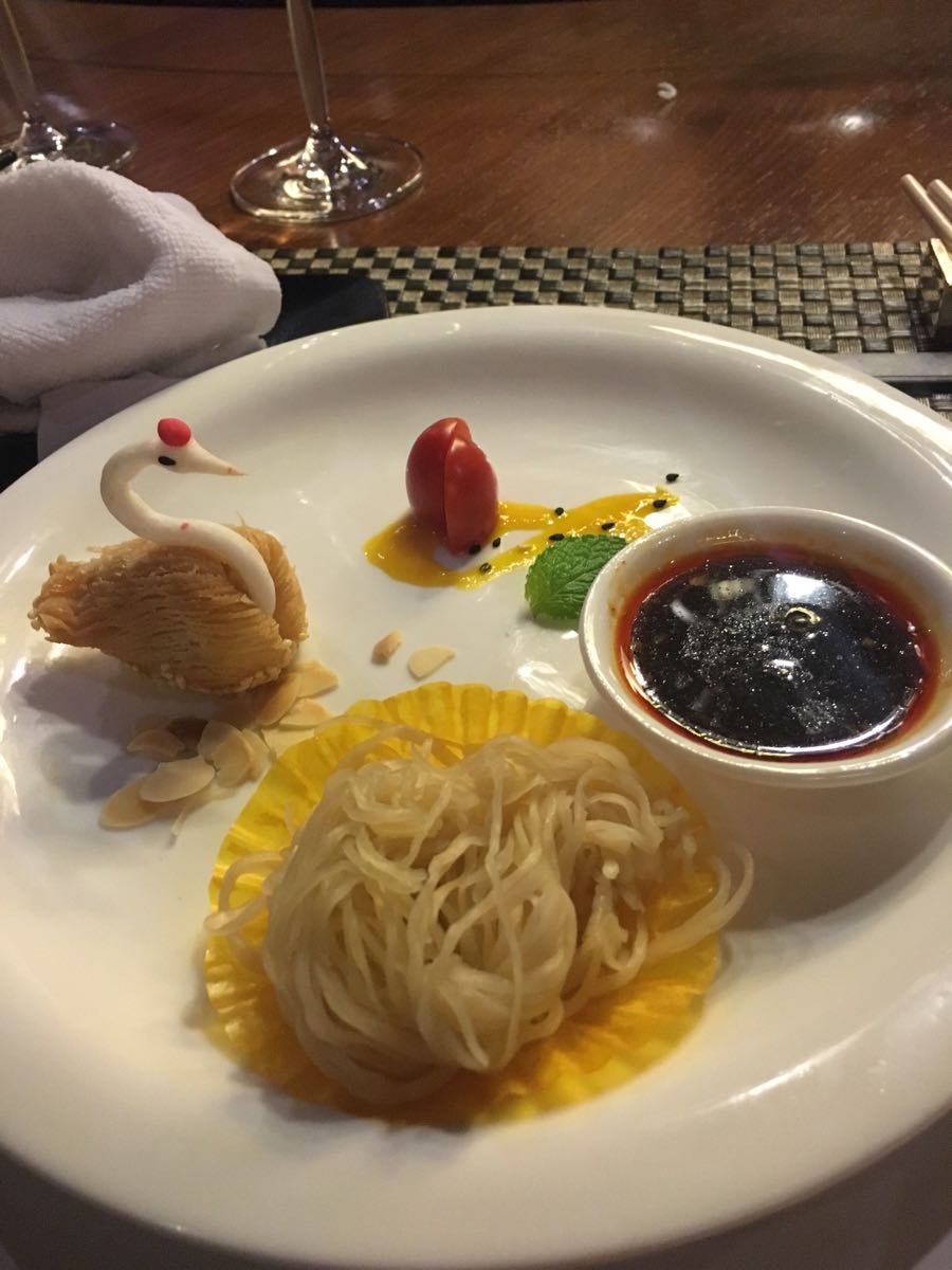 五星级酒店的餐厅环境超棒,美美的低调中国风,菜品都太精致了,还是正宗老陕风味。凉皮也能高大上;酸辣汤绝了还有海鲜在里面;牛肋排好看又鲜嫩,一口停不下来;孜然羊肉好好吃连搭配的彩椒都吃完了;还有个石烹的鱼,厨师现场表演,鱼肉好嫩,入口即化,酸酸辣辣的味道很是喜欢~总之,一万个赞,下次一定推荐朋友来啊。