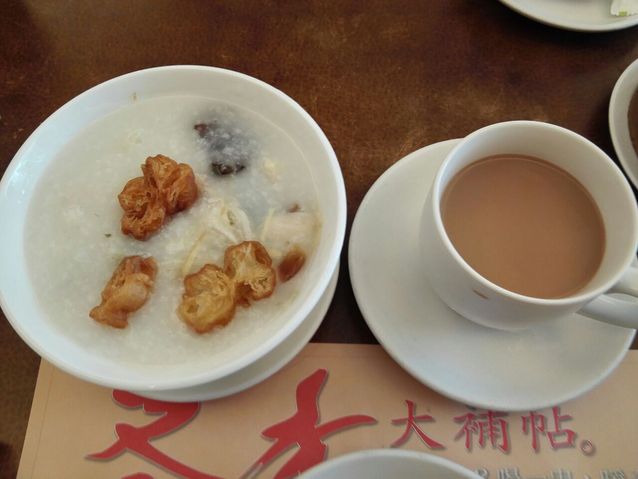 台北有名的港式茶餐厅,台北的人气早餐店,108台币的早餐套餐可谓超值,包括一份主食,一份点心加一杯饮料,两个人点的是皮蛋鱼片粥和三鲜炒板条,小吃点的是炸春卷和凤爪,冰咖啡和热奶茶,味道都不错,还有叉烧包啊面条什么的可以选择,十点到的店里人气很旺,座无虚席。
