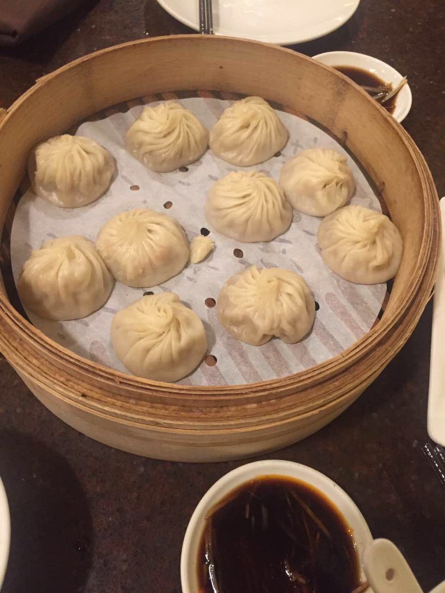 在门口排队取号留下联系方式,等了近两个多小时才收到信息,人太多了,饿得不行。糖醋排骨味道太好了,还没来得及拍照就给夹完了。蟹粉小笼包蟹味十足,素饺子色香味俱全。连醋的味道都十分正宗,现在国内也不一定能找到这样的歺厅了,排队等待的时间这么长也值了。