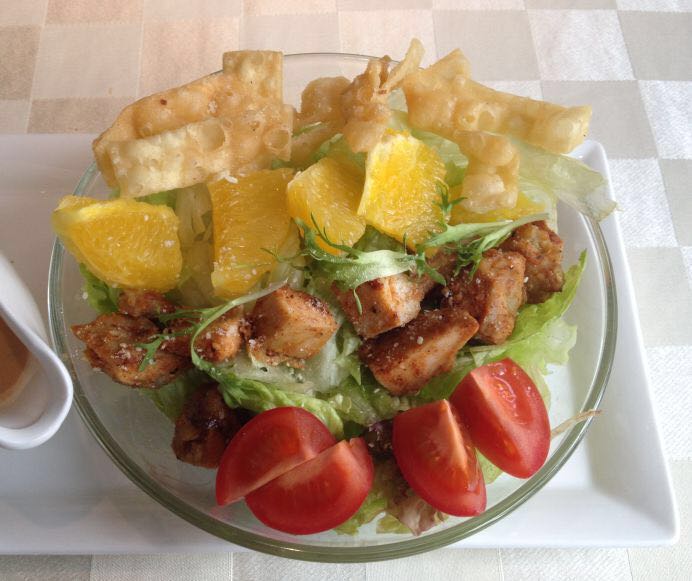 网友2016-10-02美国的色啦的量啊 真的非常大啊。这家店吃披萨为主。生了是一罗马生菜为主上面有蕃茄有烤鸡腿这家店吃披萨为主。在吃披萨之前 可以点一份色拉。美国的色啦的量啊 真的非常大啊。可以抵一顿正餐。生了是一罗马生菜为主上面有蕃茄有烤鸡腿