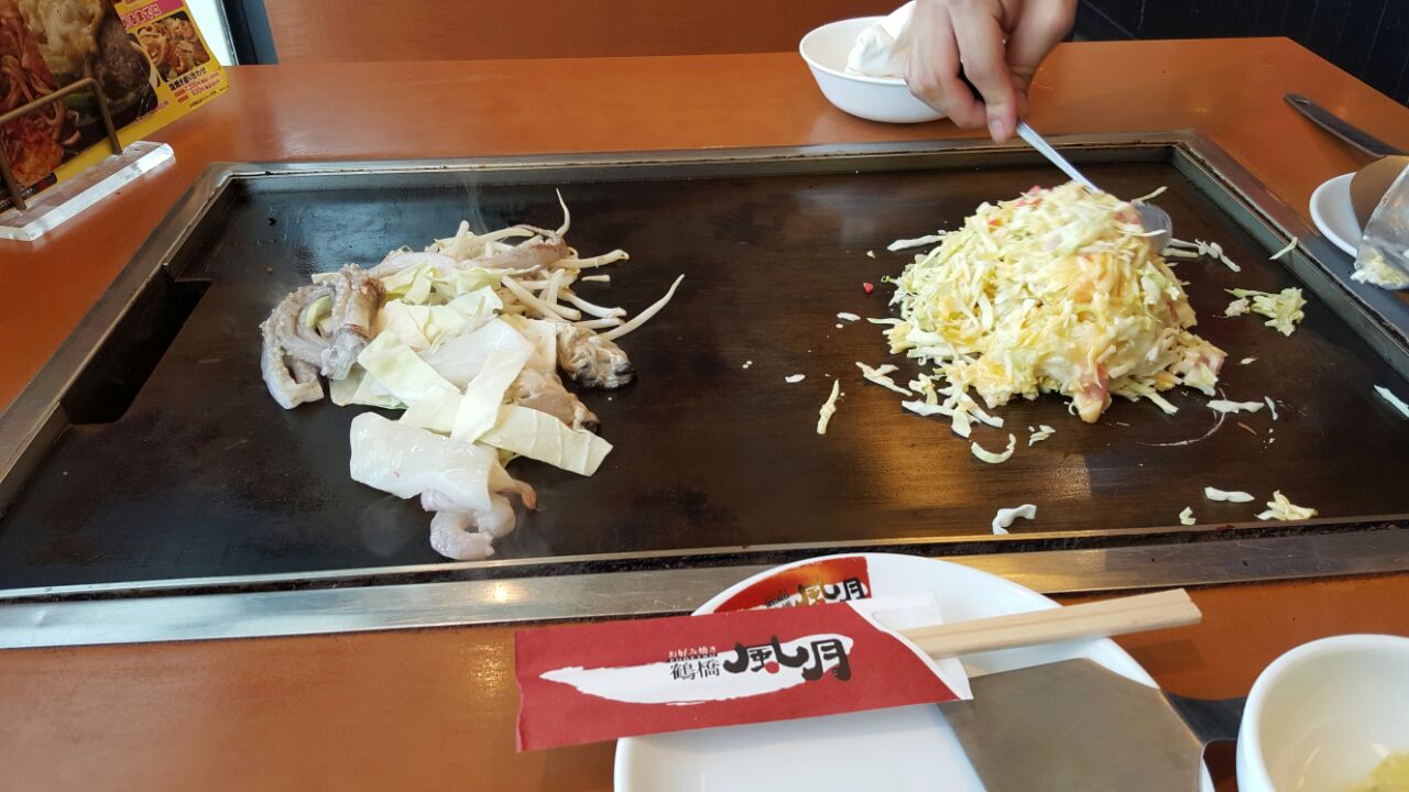 鹤桥风月,是一家吃大阪烧和炒面的店,我在这里点了海鲜的大坂烧,可是感觉很一般,海鲜的品质也一般又加上那么多生的包菜,和面糊,吃起来,乱七八糟的感觉。看见隔壁的日本人都在吃各种炒面,看上去倒是挺像的,可能都是别人碗里的菜才好吃吧。