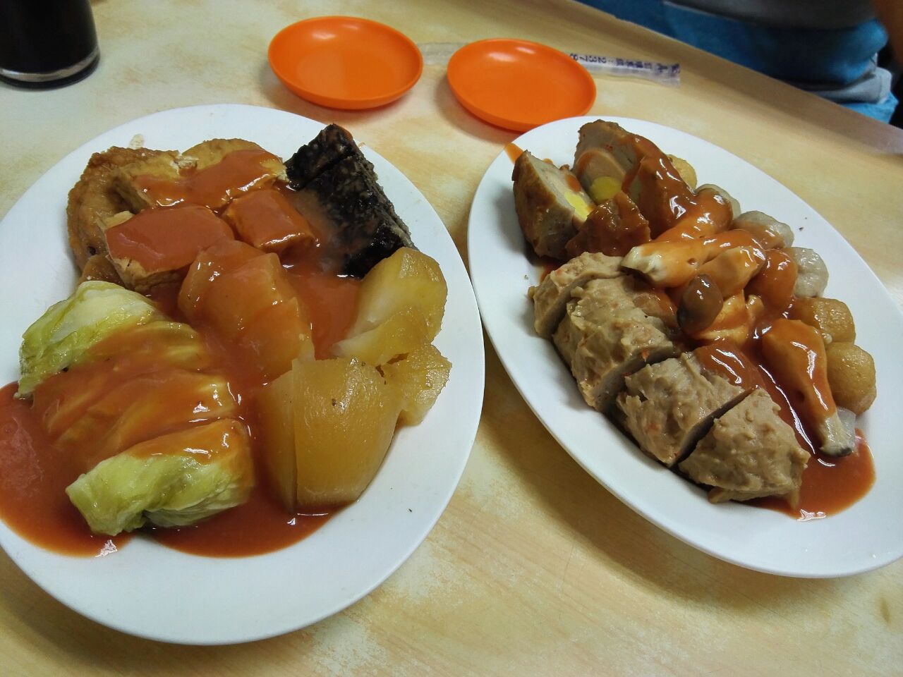 ...东煮各点了一份,店员端上来顿时傻眼,一共十款,满满两大盘,两个人吃撑了,不过真的很好吃,很够味