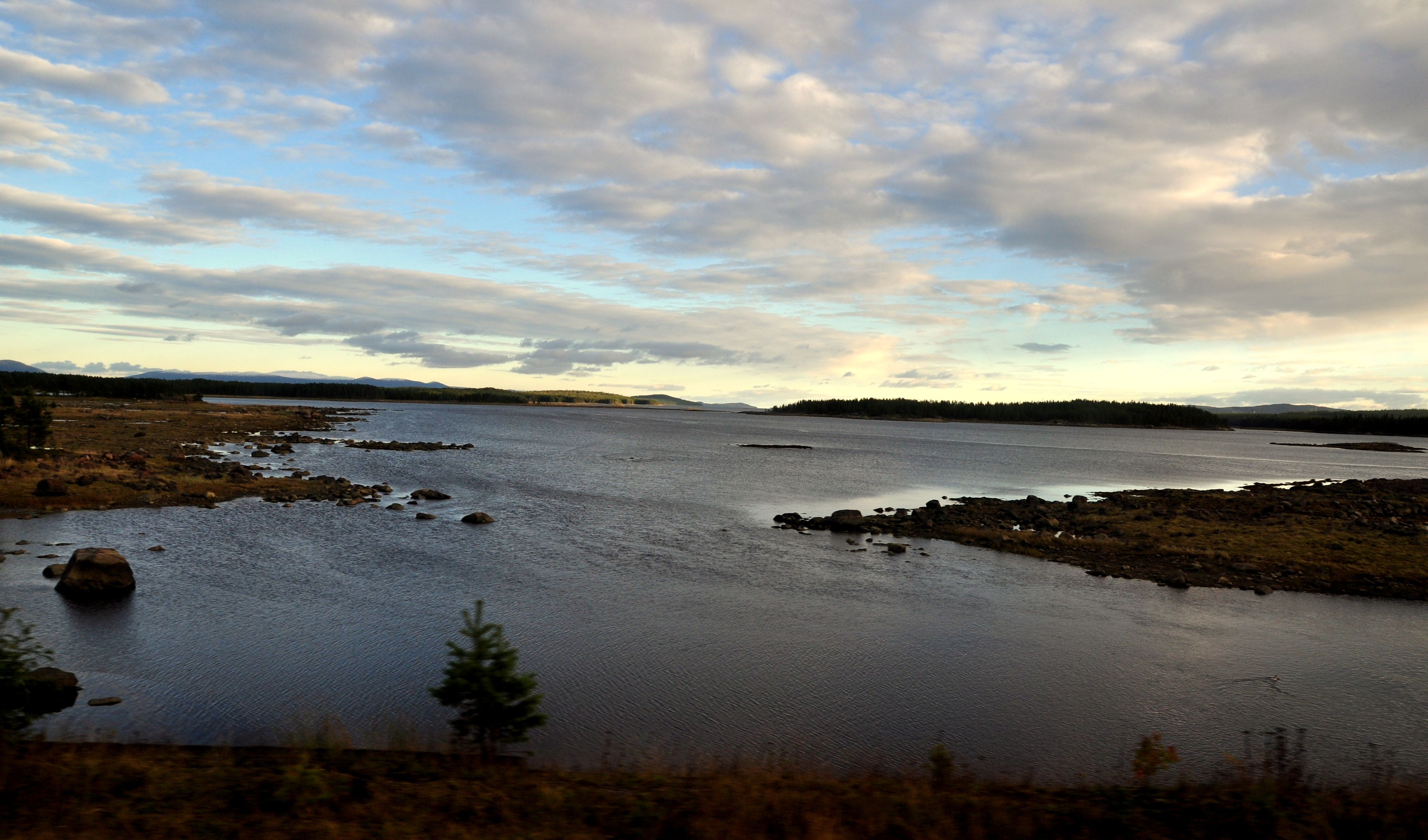 火车正行驶在奥涅加湖至白海之间地带,全是星罗棋布的大小湖泊与茂密的原始森林,窗外飞驰而过的景色很美