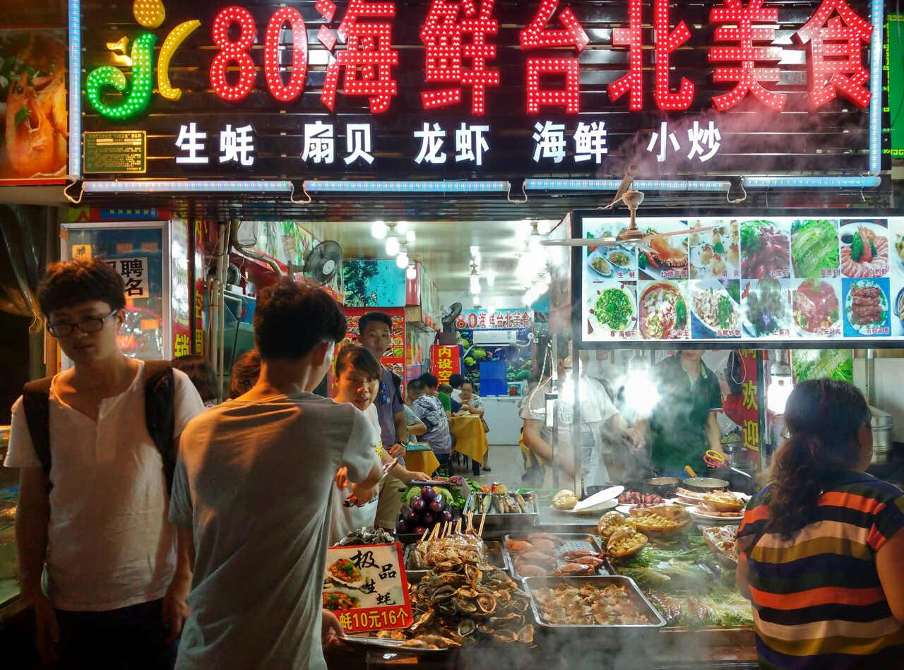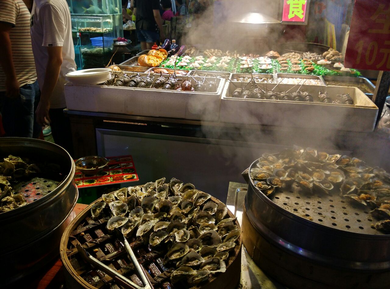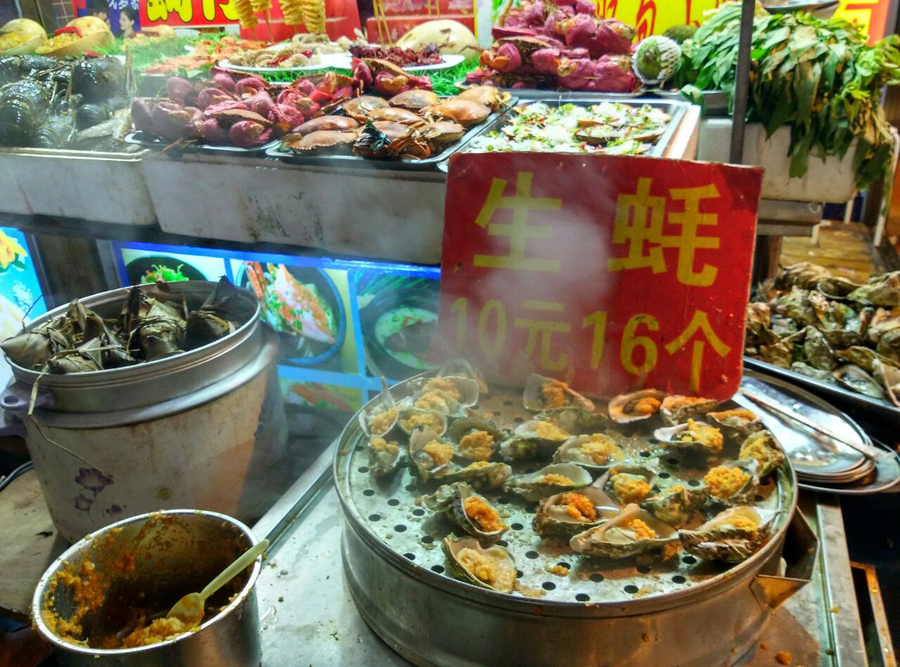 今年长假继09年第二次去厦门。这次两天动车闽南传奇秀游感觉很好的就是人和路的台湾小食街,免费任你游,爱吃不吃爱买不买全凭你。小食琳琅满目,生蚝最喜欢了,10元16个也不贵。太丰富了,海鲜为主调,生蚝、扇贝、大龙虾等等,看了直流口水,恨不得样样都尝尝……
