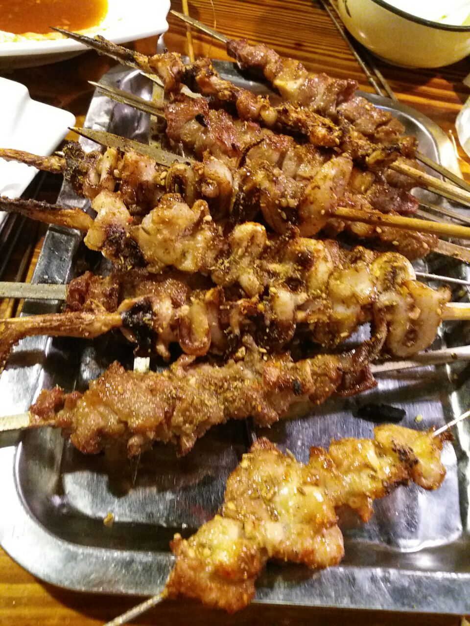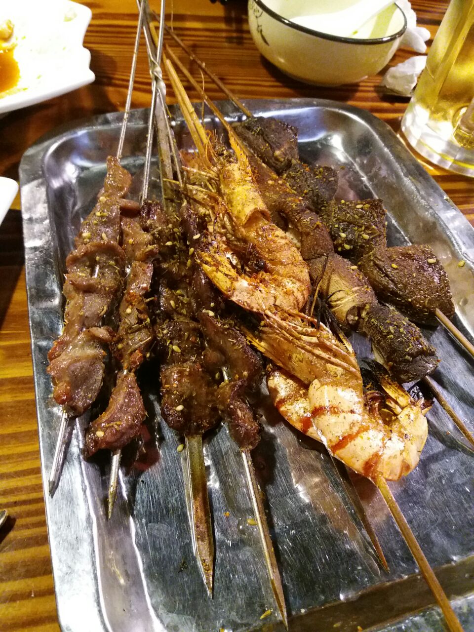 ...烤串量都很足掌中宝肉很多好吃 羊肉串也爱吃虾不新鲜个头小 带子很赞整块厚实的口感 有空还会再来