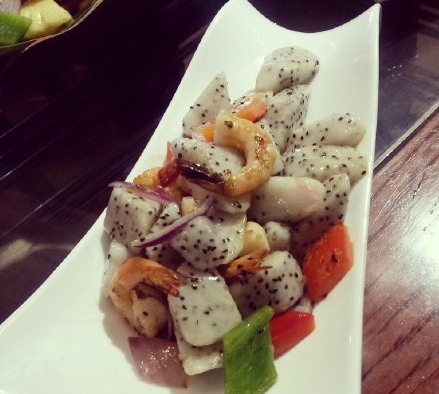 来海南玩,朋友邀请吃全水果宴,第一次吃全水果入宴的菜品,餐厅环境没得说,充满热带风情,置身其中很有度假心情。餐具很精致,是各种款式的贝壳,很有意思,菜色佳,看着很有食欲,因是水果入菜,整体偏甜,也不算腻,没试过的可以来尝尝,很特别的体验。