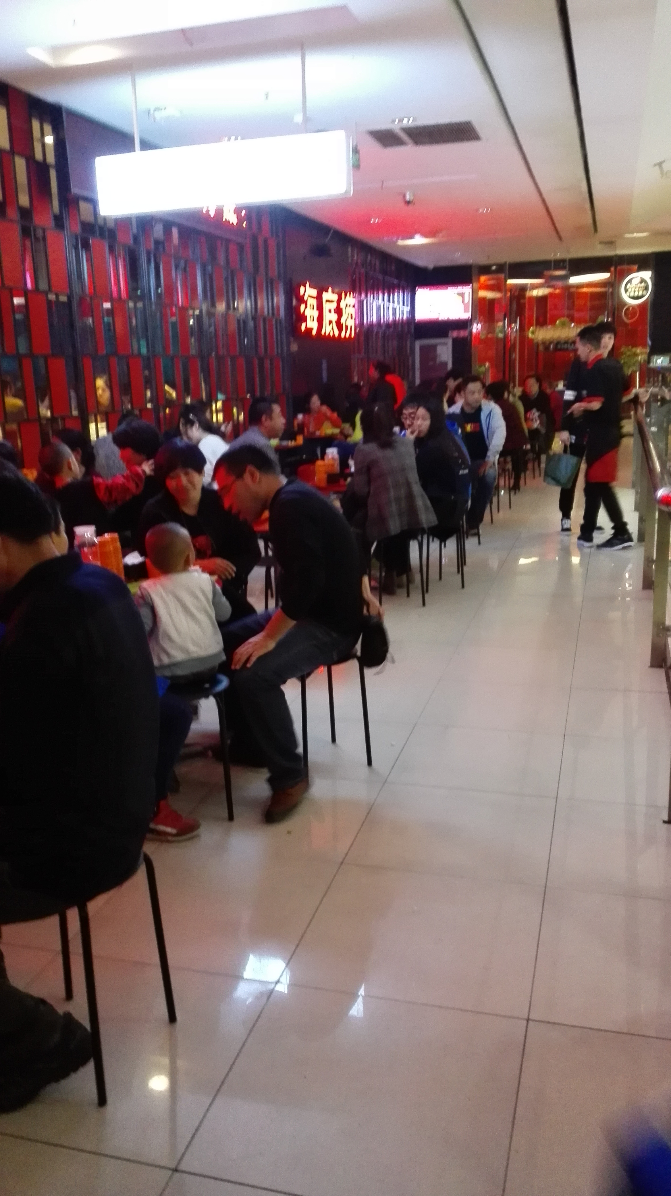 海底捞火锅(天通苑店)位于昌平区天通苑华联4楼。店面面积很大,吃饭的时间有好几十号人在等位。服务员主动帮拿凳子和小吃,很热情。这次吃感觉没有以前吃的好吃,可能是审美疲劳了吧。新西兰羊肉、澳洲牛肉、捞派毛肚的味道都不错,但不再觉得惊艳了。蔬菜很新鲜。小料种类繁多。吃饭小票可以换停车券。