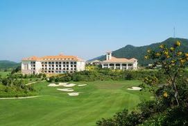 这个度假村面积非常大,里边有一个高尔夫球场,环境特别好。这里距离马路比较远,晚上睡觉几乎没有噪音