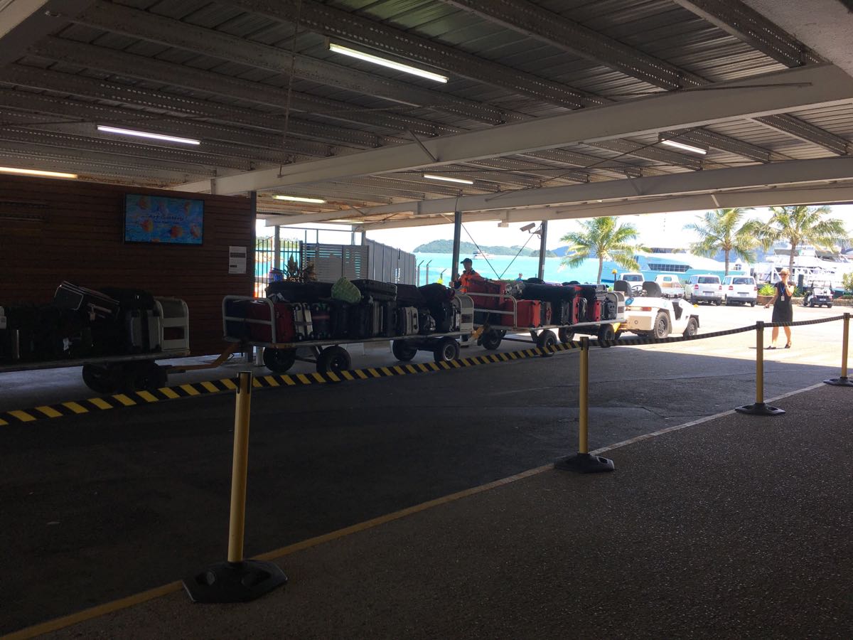 好迷你的一个机场,都不需要行李转盘的,车子拉着行李就出来了。我们也是直接走下飞机,步行几百米就到候机楼了,一共就三个登机口,规模就和一个大的巴士站差不多。机场就在海边,风景很赞!机场有免费酒店巴士送到酒店的,岛不大,路程也就十来分钟就到了。
