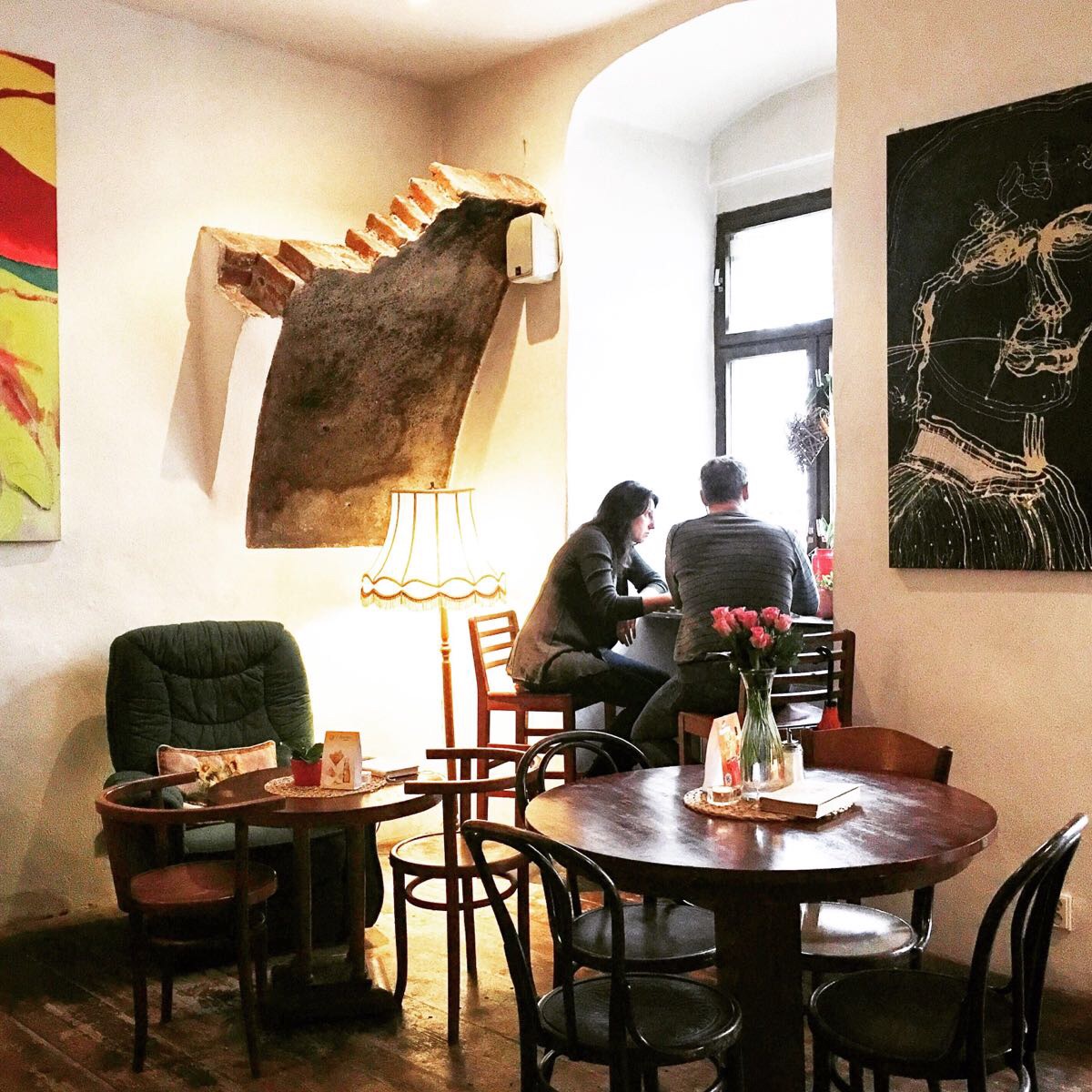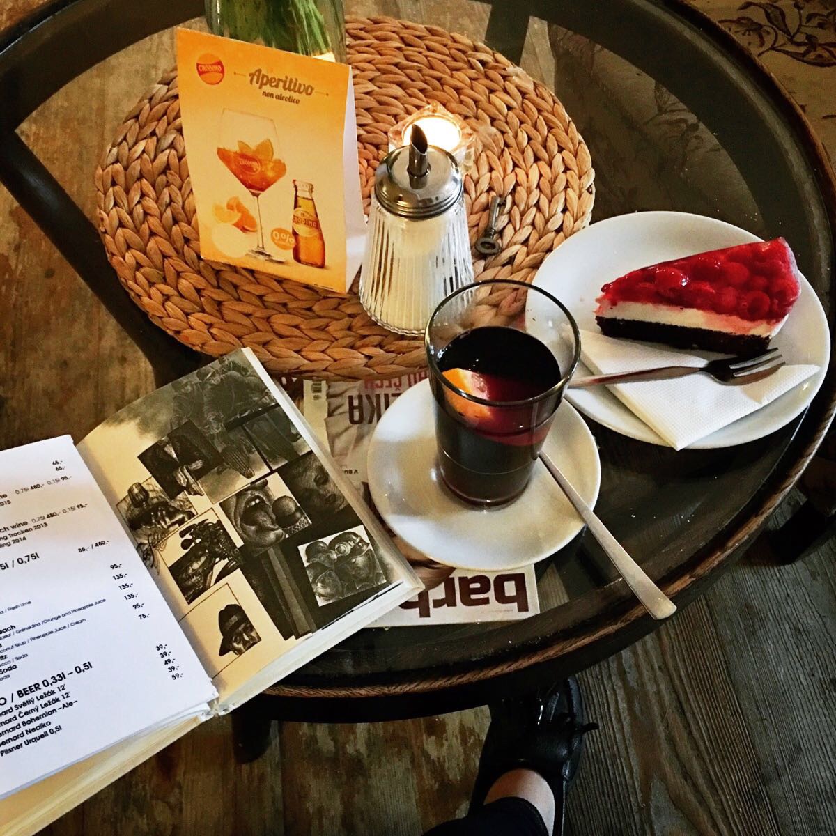 在捷克童话般的克鲁姆洛夫小镇遇见一家开在席勒艺术中心的咖啡馆,枫叶半红半绿,忍不住走进去,艺术气质的布置怦然心动,没有点咖啡,天气凉了应该喝杯热红酒~配上树莓蛋糕,舒服待了一下午,结果自己的书落在咖啡馆,夹书了当书签也浑然不知,想想也是奇妙际遇~