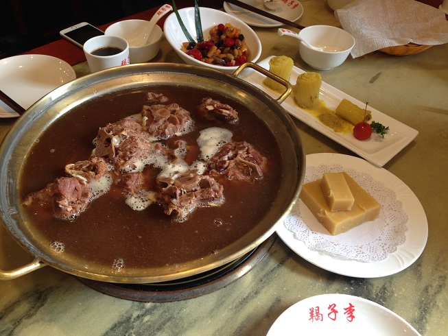 北京的羊蝎子大多是红汤的,蝎子李是少有的以白汤主打的羊蝎子。这家是老店,开了几十年了。交通不是很方便,但是慕名而来的人还是很多。 店面临街,很好找。里面很干净。不像有的羊蝎子店看着油乎乎的,服务员态度也不错。 白汤羊蝎子要求肉质新鲜,沾上他家特制的小料,鲜香可口。红汤的感觉一般,没有老城一锅口味重。建议还是白汤的吧。精品的羊蝎子肉很多,吃着过瘾。 这里的菜品基本秉承了老北京的传统风味,做的不错。芥末墩做得尤其好,使用的芥末没有那么冲,吃在口里甜香微辣,好吃。 豌豆黄也不错,口感细腻,入口即化。要是稍微再甜点就更好了。 炸灌肠一般,比庙会上的好,但是不如家里做得好吃。感觉刀工不对,蒜汁口味淡了。 塔嘛鱼做得不错,其它的马蹄汁、涮菜什么的中规中矩吧。 停车很不方便。门口有公交车,还是坐车来吧。
