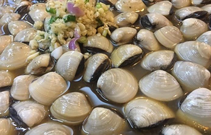 以前我不太爱吃这卜卜贝,总觉得太小没肉吃,但这个招牌卜卜贝真的很好吃,小小一个但很肥,很鲜甜,完全没有沙子,比较干净。另外还点了兰花蚌,其实就是北极贝,北极贝是被切开的,已经清理过内脏,也是很鲜甜。另外必须推荐进口松叶蟹柳,这个放下去10秒就可以吃了,非常快,非常棒!