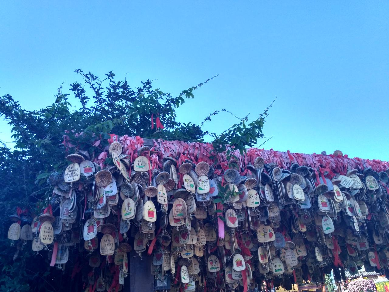 听说许愿亭很灵,我也不知道是不是真的如传说的那么灵验,流连在这个长廊中好久,抬头细细地看,轻轻地读各式各样的愿望,感受着大家虔诚而纯粹的祝福,有期待美好甜蜜爱情的,有深深祝福家人和朋友的,也有很多真正的内心独白,不管民族,不管文字,不管贵贱,不管富贫,希望都一样的简单,每一块都触动着心中最柔软的地方。