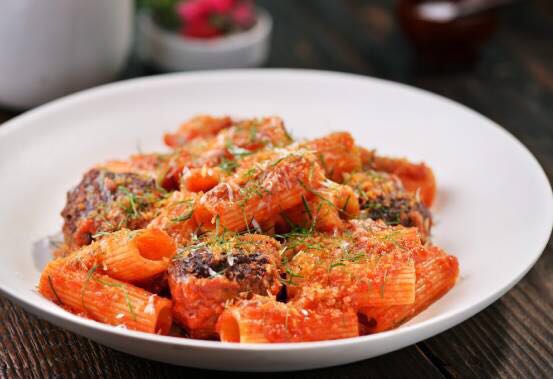 新鲜肉和小beef做的肉丸,超劲道的口感,用各种食材小火熬成的酱料,有迷人的香气,和着烟熏pe...新鲜肉和小beef做的肉丸,超劲道的口感,用各种食材小火熬成的酱料,有迷人的香气,和着烟熏pepper and tomato浓酱一起翻炒,装盘时撒上辣椒面包糠,佩科里诺芝士和欧芹,吃一口想三年!