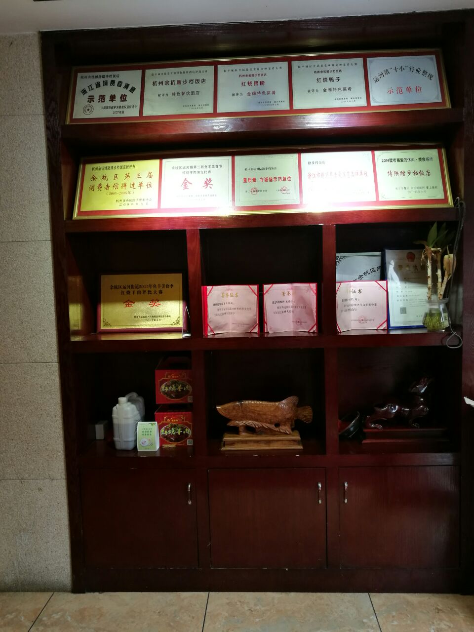 踏步档在临平兴旺工业城,餐厅蛮大的,环境还可以了!一楼是大厅,二楼是包装,大小都有,有四个人的包厢,这个很少餐厅有!菜做的不错,特色菜是红烧羊肉,羊肉没有一点腥味,瘦肉很多,很有嚼头!老豆腐和肉皮烧笋干很入味很香!凉菜凉拌黄瓜和木耳一般般了!餐厅门口有很多荣誉证书,老牌餐厅了!门口停车场,很方便了!