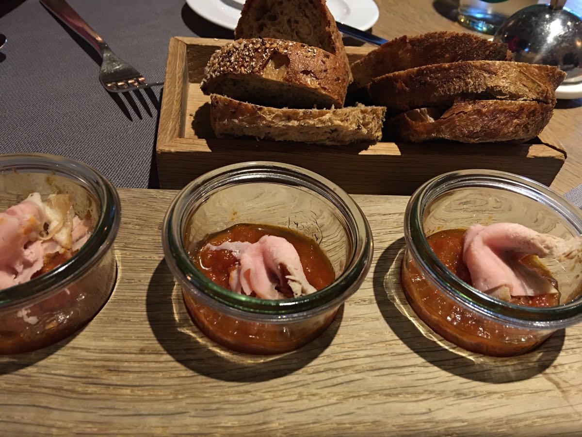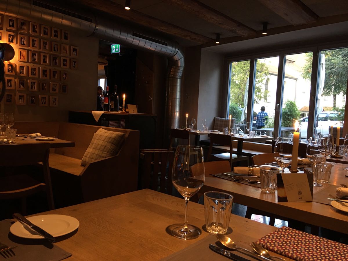 这家餐厅整体氛围很温馨,属于半地下,从小窗还能看到路面行走的行人。餐厅应该是很热门的吧,好像没有预定基本是吃不上的。在这里点了几个菜,土豆好吃,前菜是厨房赠送品尝的,酸酸的,味道有些奇怪。看隔壁桌专门点了前菜品酒,应该他家酒也不错!