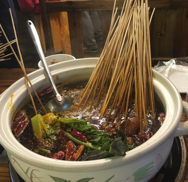 老板挺热情,鸳鸯锅底48虽算不上便宜但是在丽江古城内也算正常价格,点了无骨鸭掌太有嚼劲不推荐,鸭血煮麻辣锅底很好吃,串串那些各花入各眼,调料很丰富。比起云南本地菜,算是个不错的调味选择,推荐在吃腻云南菜的朋友尝尝看~~