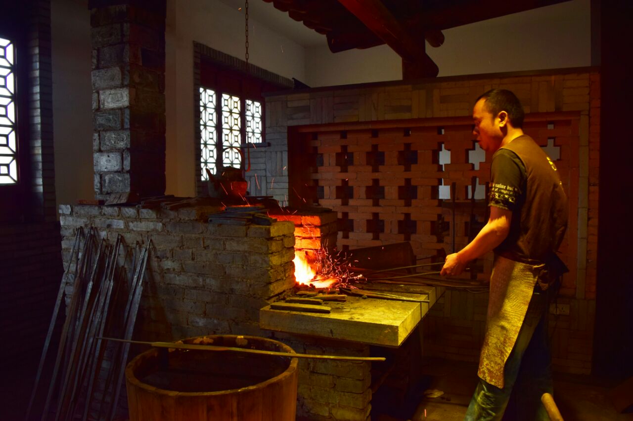 在龙泉沈广隆剑铺欣赏了一把剑“出生”的过程,热锻造,冷锻造,磨砺,雕琢等等过程不断反复,才真正知何为宝剑锋从磨砺出,真正懂宝剑得之不易,果然也就英雄才配的起宝剑。剑铺除了铸剑过程,还有成品剑展厅,以及一些名剑仿品展示,当然真的有很多铸剑师傅在锻剑,不只是展示过程。