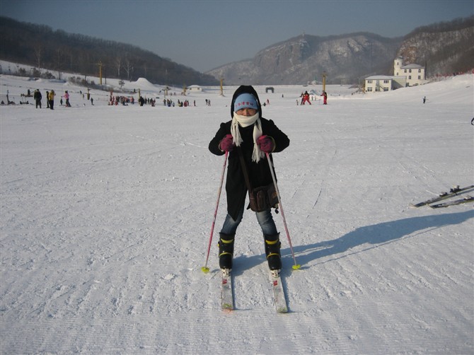 到了冰城,除了看冰灯,还得去体验下滑雪。吉华滑雪场是一个融合了大众旅游滑雪和竞技滑雪的滑雪场所,原先一直没听说,当然因为我是南方人,且见识少,直到哈尔滨朋友带去了才知道。到服务中心租了套滑雪道具,换上,有点那么回事了,慢慢移动到滑雪场,第一次,选择初级滑雪道,坡度适宜,适合我这种初次体验者。