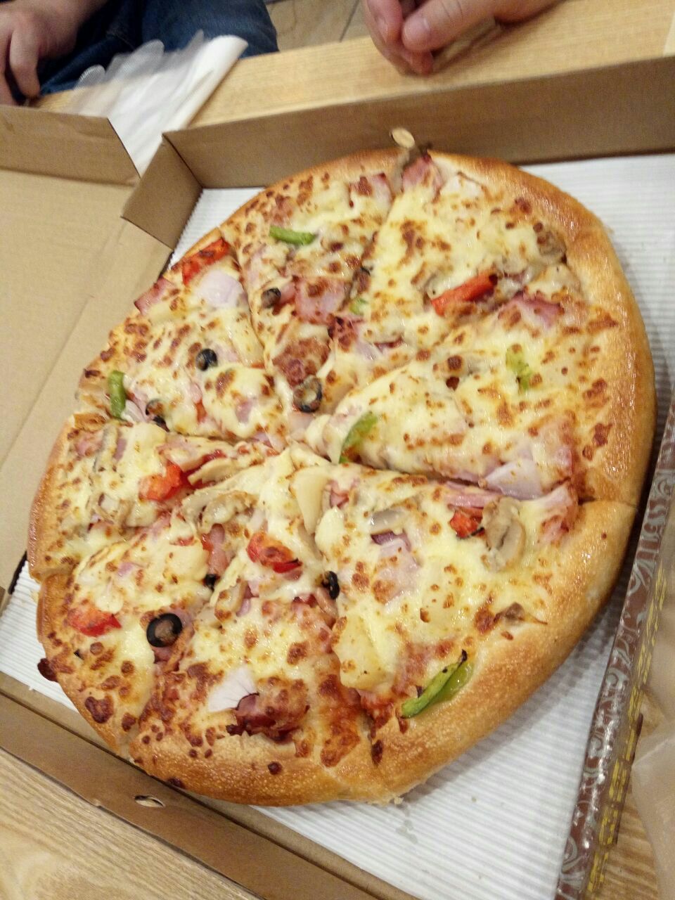 ...时候早过饭点啦,都下午茶时间了,不过主食还是要点的,爬山是大工程啊,12寸pizza来一个吼吼