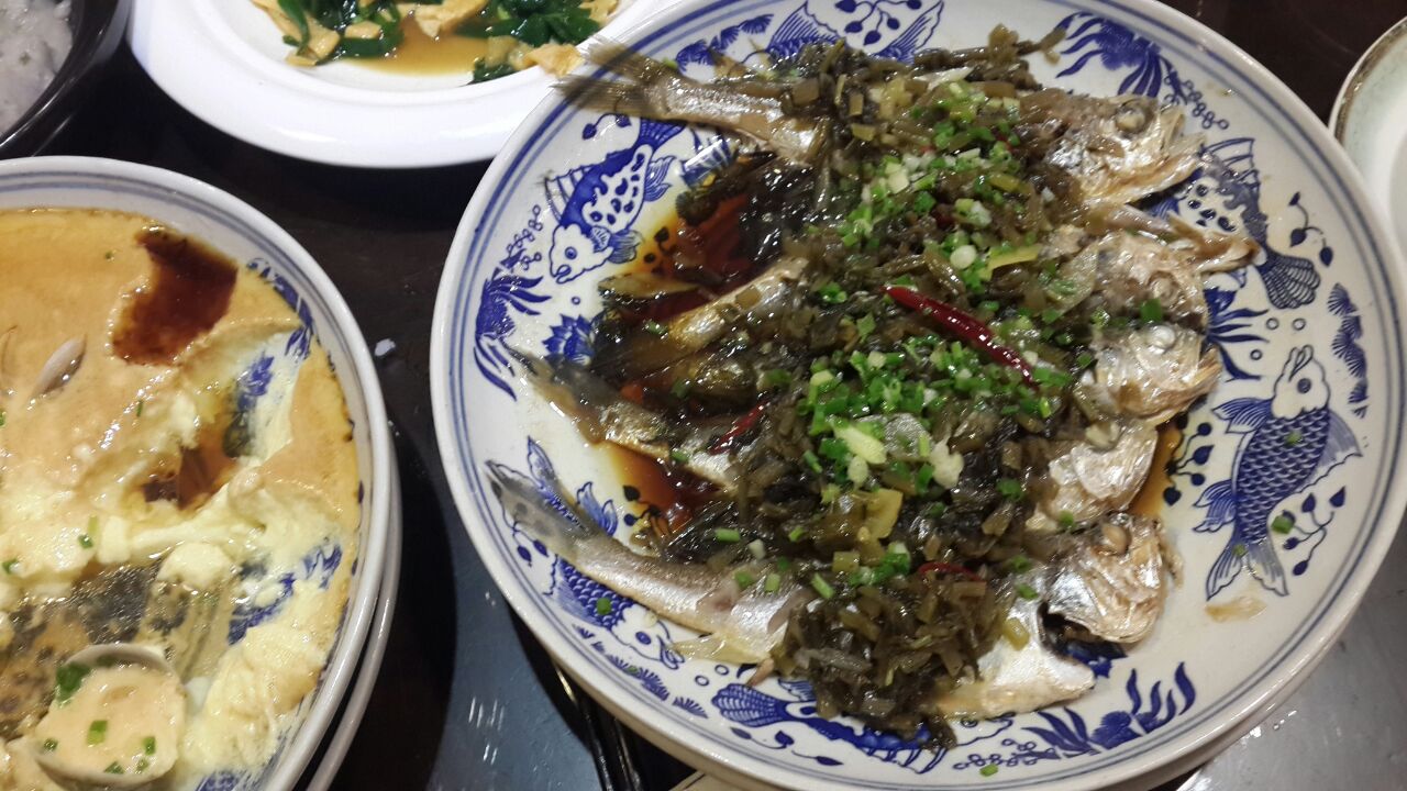 附近比较有自己特色的农家土菜馆,已经开了好些年了,臭豆腐吃起来香脆而不腻,葱油蛏子大而肥,芋头煲也是每次必点之菜,雪里蕻小黄鱼是大家的最爱,最有特色的就是长江里的大武昌鱼,肉头细腻,鲜美。其他素菜也各有特色。