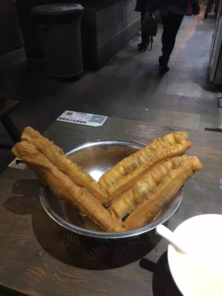 这里的大饼油条有着很好的口碑,所以这天唱完KTV以后就奔过来吃,第一次来,必须是甜豆浆+油条的配置,同来的朋友吃了豆腐花,也赞不绝口。看着隔壁桌子的炸猪排,我们也很垂涎,所以下次还要来吃的!就是天冷的时候太冷了点。