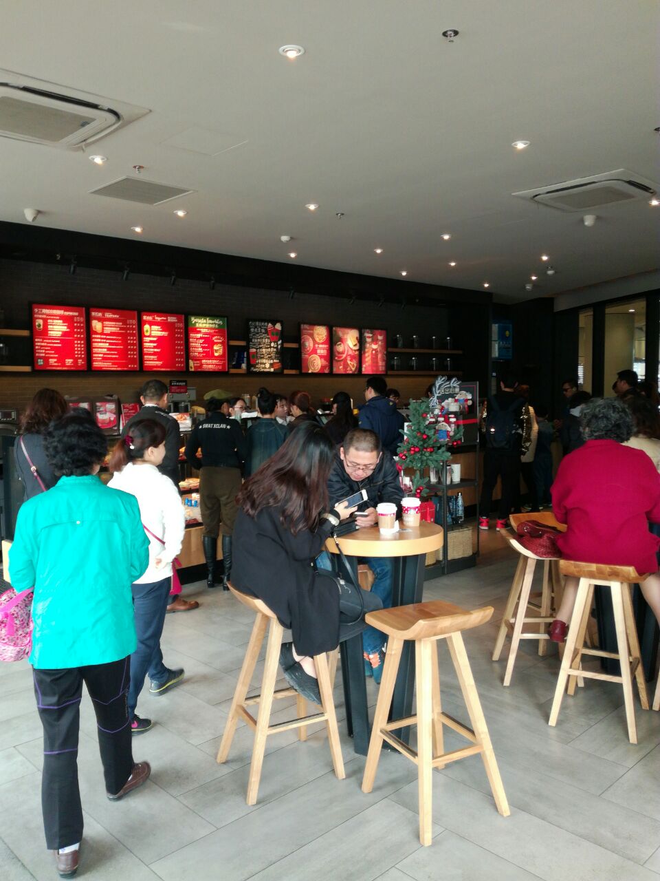 生意很好,很多人跟我们一样商场没开就来了,有一个黑围裙,品质稳定,就是人多的时候卫生稍微有些跟...送娃学英语,顺便过来喝个咖啡,人很多,生意很好,很多人跟我们一样商场没开就来了,有一个黑围裙,品质稳定,就是人多的时候卫生稍微有些跟不上,整体不错。