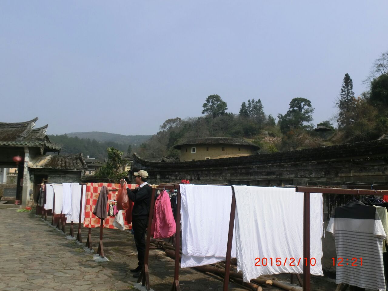 土楼里面积不大,不过还是有人居住,从门口晒的被子看,里面人还不少