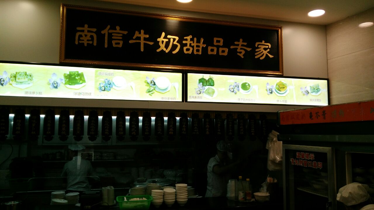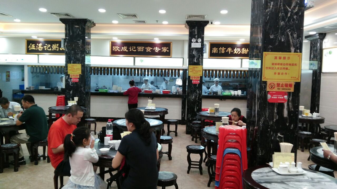 三下广州,又来荔湾美食家揾食。这是伍湛记粥品专家,南信牛奶甜点专家和欧成记面食专家合办的食府。推荐:1,欧成记的虾肉净云吞。2,南信的芝麻糊。3,伍湛记的皮蛋瘦肉粥。4,德昌咸煎饼。这些都是我在吃到的最好的。