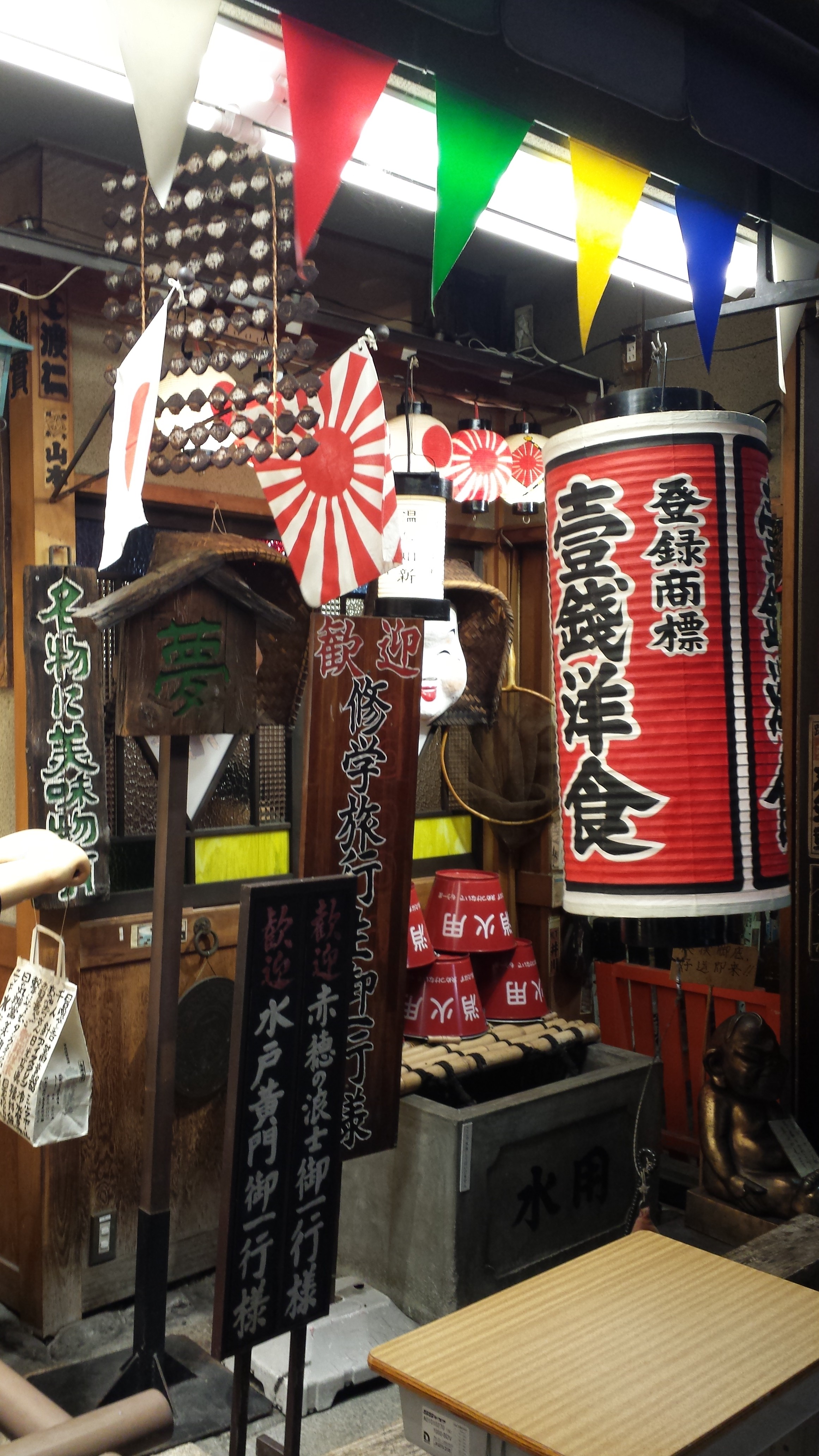 大阪挺出名的一家店。光是门口的小孩被狗咬掉裤子的摆设已经非常吸睛。全店只有一种食物,客人非常多,全部都是搭台坐的,有点像广州的老字号面店一样,必须要跟不相识的人坐一桌。而且每一桌还有一个人偶放在那里陪吃。食物其实不好吃,非常咸,吃过一次不会再有第二次了。