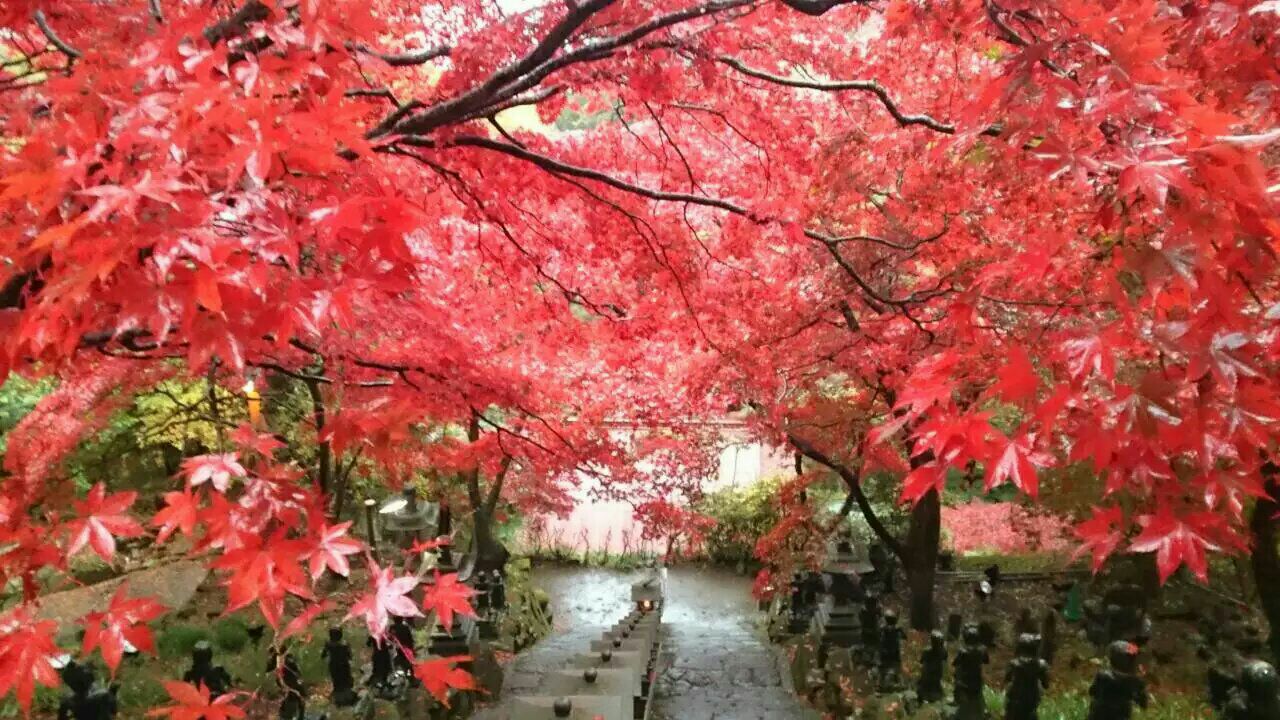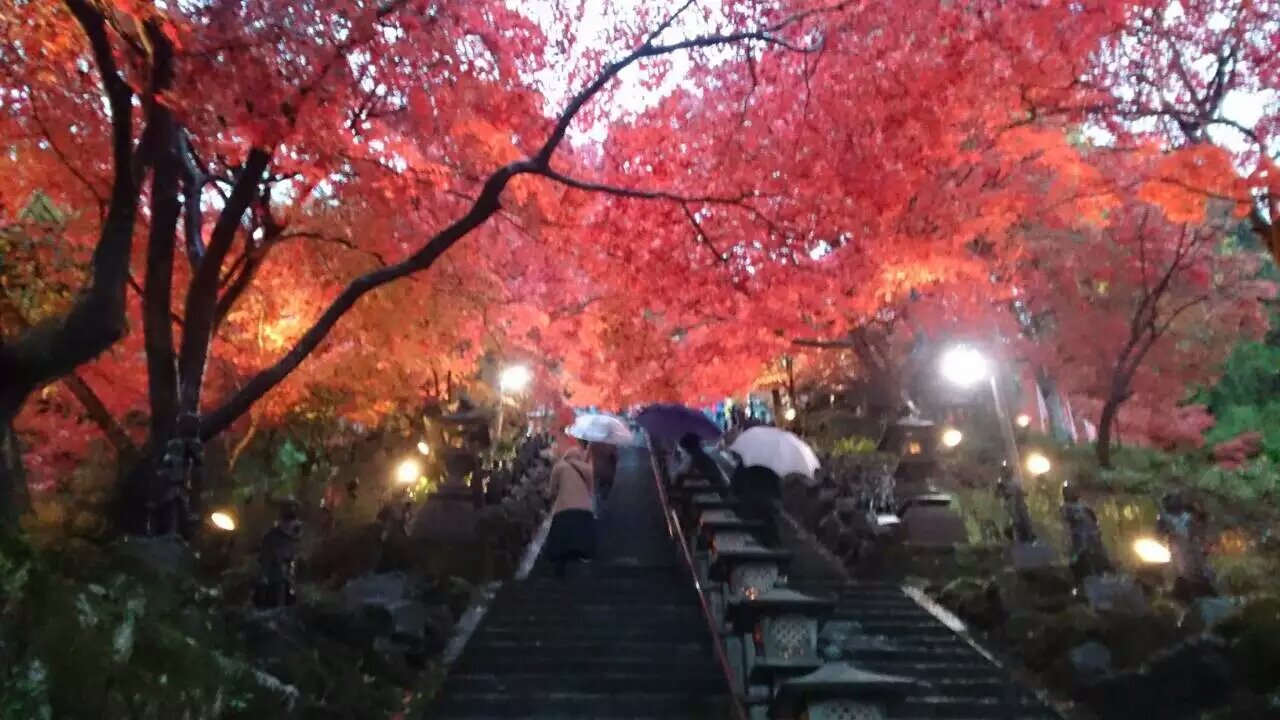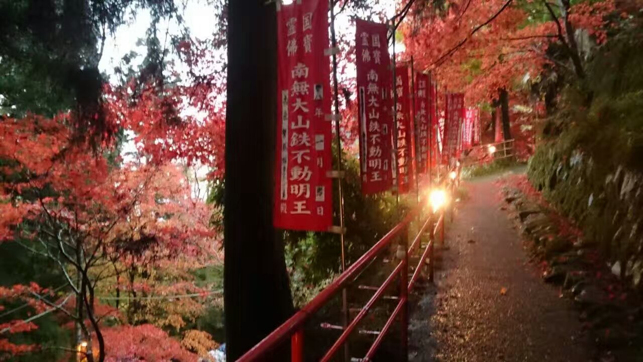 ...名而来,特别是在大山寺前的阶梯拾阶而上,顶上红叶布天,两旁童子护守,如此庄严美景,让人叹为观止