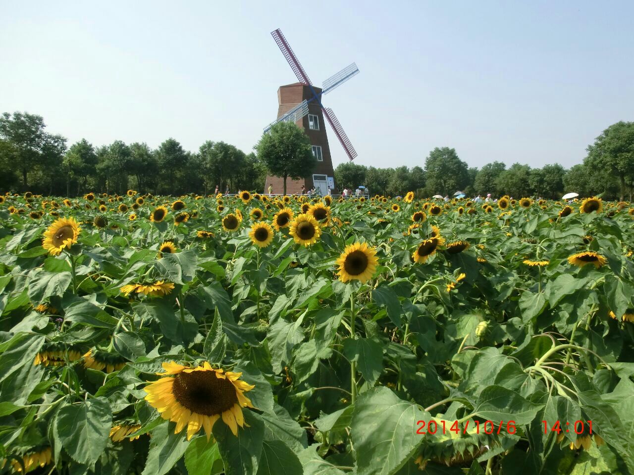 东西湖郁金香主题公园,比较偏僻,有一辆公交车直达,不过很少,最好在轻轨终点站坐路边私车前往,价格面谈,一刻钟就可以到了。门票60元,小孩半价。这里应该是春天去看郁金香,我们是在国庆假期去的,没有郁金香,但是有其他的花卉已经盛开,向日葵,马鞭草,波斯菊正在怒放。园区面积较大,分多个场地,其中中央花园和室内花棚最受欢迎,游客如织。但最吸引人的无疑是向日葵花圃,大片大片的向日葵花开正艳,中间一些小点缀是摄影爱好者的最爱,风车,小洋房最漂亮。等春天再来看看郁金香,应该又是一番不同的景致。