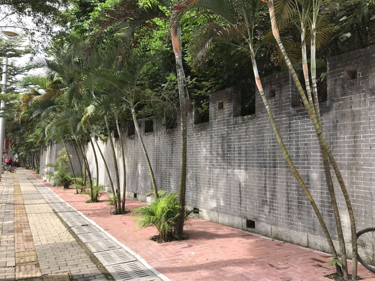 网友2016-11-25从洪圣古庙出来,沿着青灰色的砖墙和路旁的椰子树前行,白兔岗炮台就到了从洪圣古庙出来,沿着青灰色的砖墙和路旁的椰子树前行,白兔岗炮台就到了。长洲岛上的长洲炮台共有七座,呈扇形分布在7个山岗上,白兔岗炮台就是其中之一。