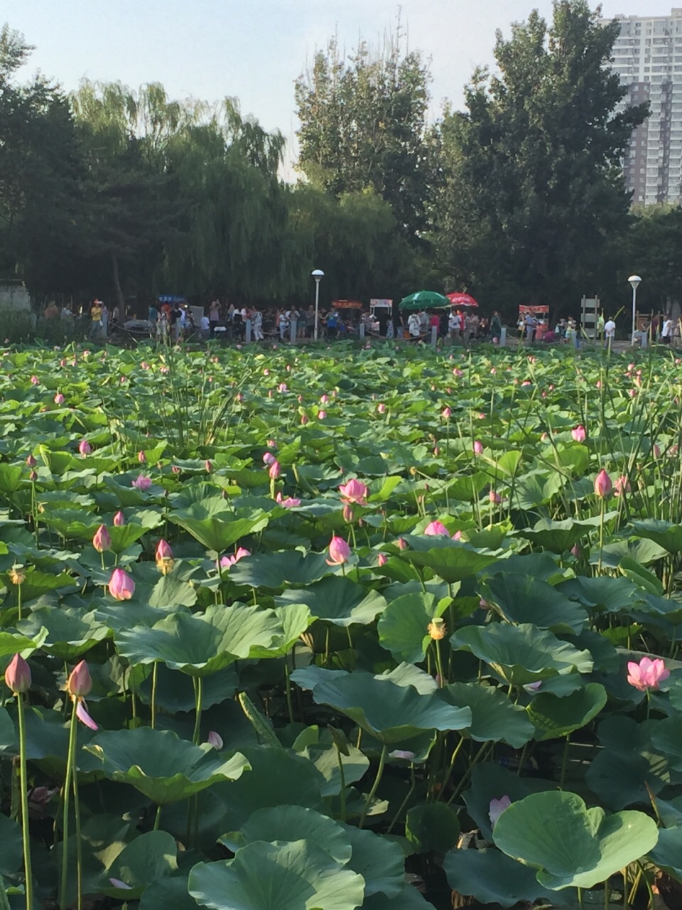 免费 荷花盛开的季节很多荷花 很休闲的地方 夏天 晚上8点左右夜市开始