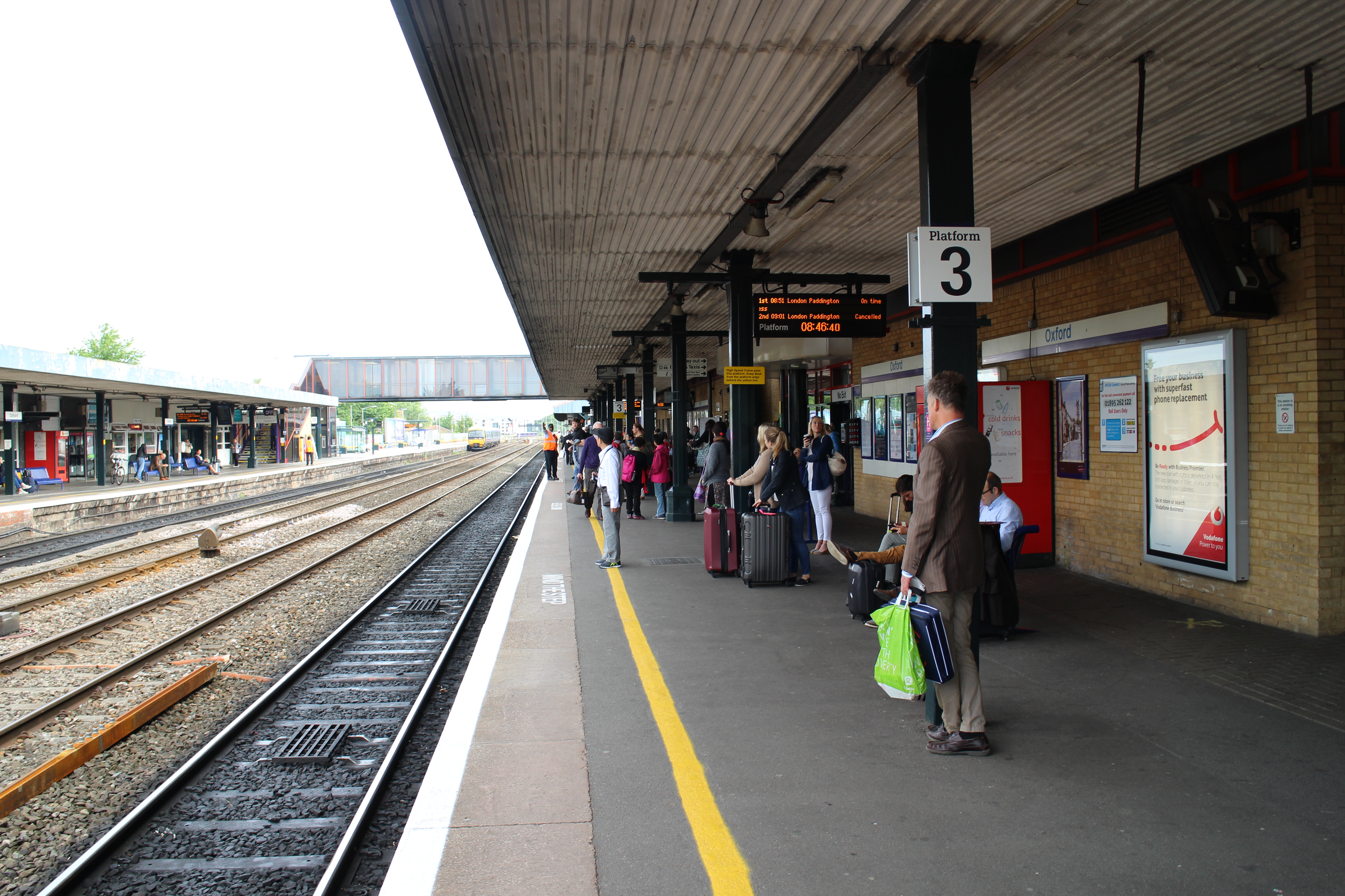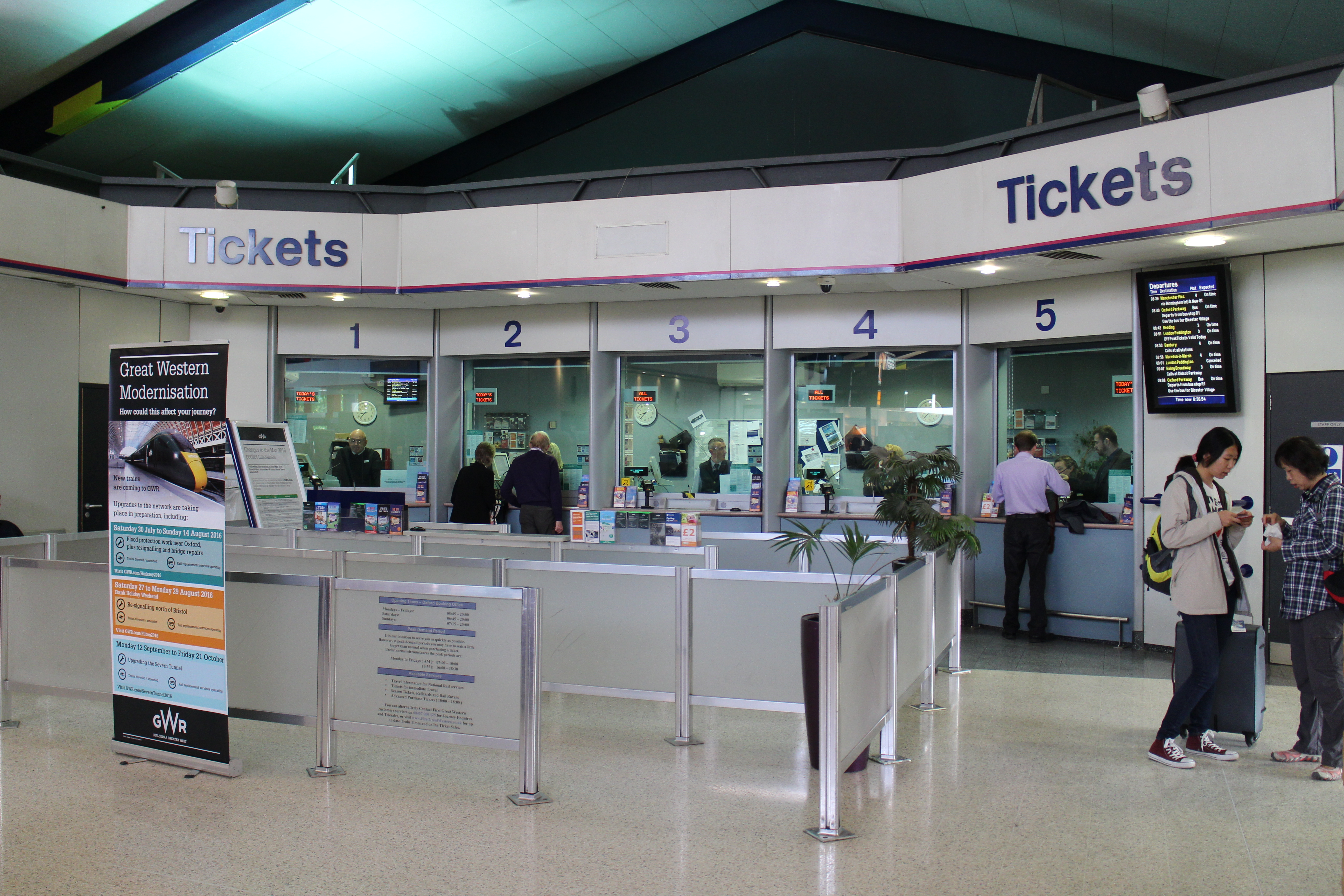早饭后我们离开家,步行前往牛津火车站。今天我们将搭乘火车往返温莎游览。步行约40分钟抵达火车站,从候车室内的显示屏看到我们要乘坐的09:01的火车被取消了。于是到问询处了解情况,工作人员很热情地给我们提供了新的换乘方案。新的方案是:提前10分钟搭乘离开牛津的火车,先到雷丁换乘再到斯劳换乘前往温莎。于是赶快抓紧时间进站,在站台等候约5分钟后列车进站,上车进入车厢内看到乘客不少但每个人都有座位。开车后开始检票,车行约25分钟到达雷丁站,在站台上看到显示屏上我们要换乘的那趟车是延误状态。于是又请教站台上的工作人员,其也是很热情地给我们制定了新的换乘方案,于是又是抓紧时间换站台,等候列车进站后上车离开雷丁站。没想到这一段约20多分钟的路程竟然在最后也还是延误等待,结果我们到达斯劳站时,原定换乘的那班车刚开出站。于是又等待20分钟后的下一班,最后在10:37抵达温莎车站,比我们最初买票时的预订抵达时间晚了约40分钟。这一段两次换乘火车,虽然状况频出但我们还都比较好的应付了,这也是一种体验和锻炼。体验到英国铁路的不靠谱,又是取消班次,又是班次延误,但平心而论他们的服务确实是很热情周到。