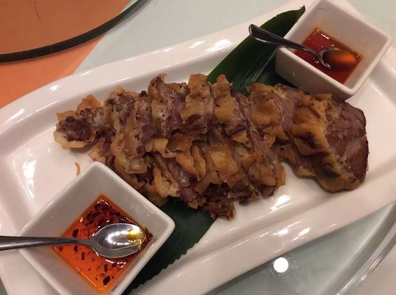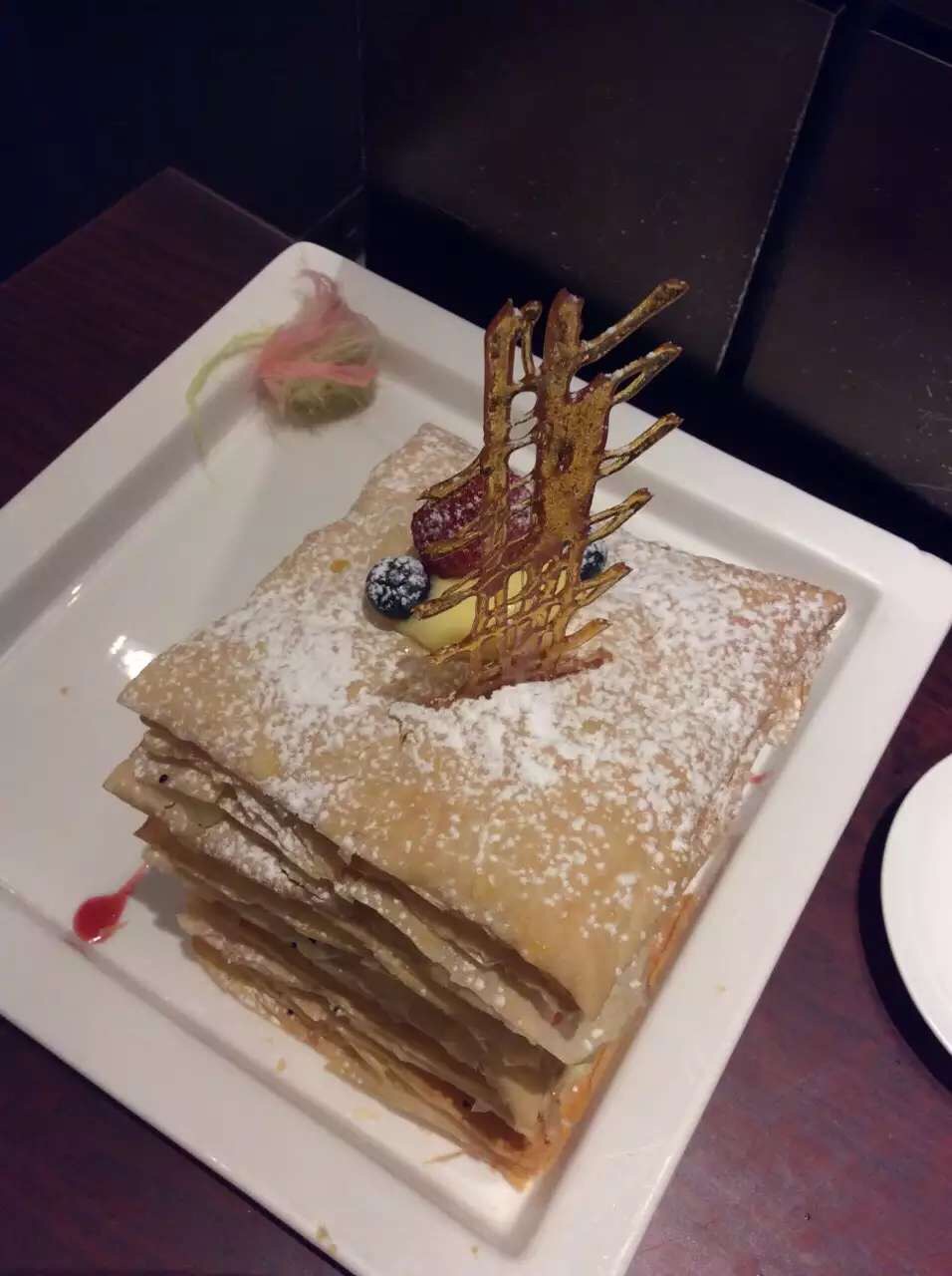 平时大多中午来吃点心,要十一点拿号,不然到饭店就要等很久,难得吃顿晚饭相当满意呀。片皮鸭批下来以后整个鸭子作冷盘,说是鸭壳其实好多肉的,比鸭汤好多了。清炒桂鱼丝一根鱼刺也没,终于可以大胆放心吃一次了。脆皮牛坑腩的外皮香脆,牛肉又很酥嫰,喜欢!桂花炒银簪是蛋黄炒黄豆芽,蛮漂亮的。拿破仑虽然每次会点不过这家的拿破仑始终觉得太一般。