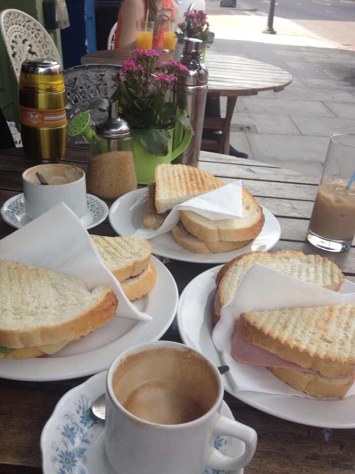 到了一看时间还早,这才有空坐下享用一顿早餐。英国的街边咖啡馆真是漂亮,好有情调一早就爬起来,换乘多次赶往白金汉宫准备看换岗。到了一看时间还早,这才有空坐下享用一顿早餐。英国的街边咖啡馆真是漂亮,好有情调。在这里点的最简单的三明治和一杯咖啡,6镑多,早午餐一起解决了!
