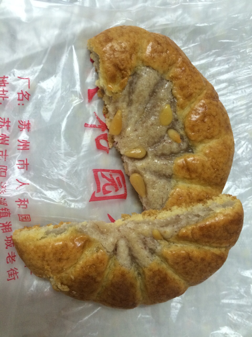 有人说人和元的麻饼是苏州最好吃的,因此特意去买来品尝。 松仁枣泥麻饼:糖和板油比叶受和的更多,对爱食甜和猪油香的朋友。确实是更像小时候的味道。我个人不太喜欢里面砂糖没化吃起来沙沙的口感。 松仁酥:顺带买着尝尝,价格便宜料想没多少松仁。品尝还是失望,面上的这些松仁也不算少了,可一点香味都没有,白白浪费了这些个松仁。