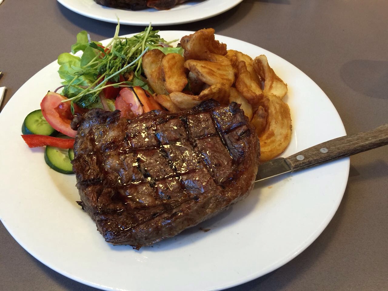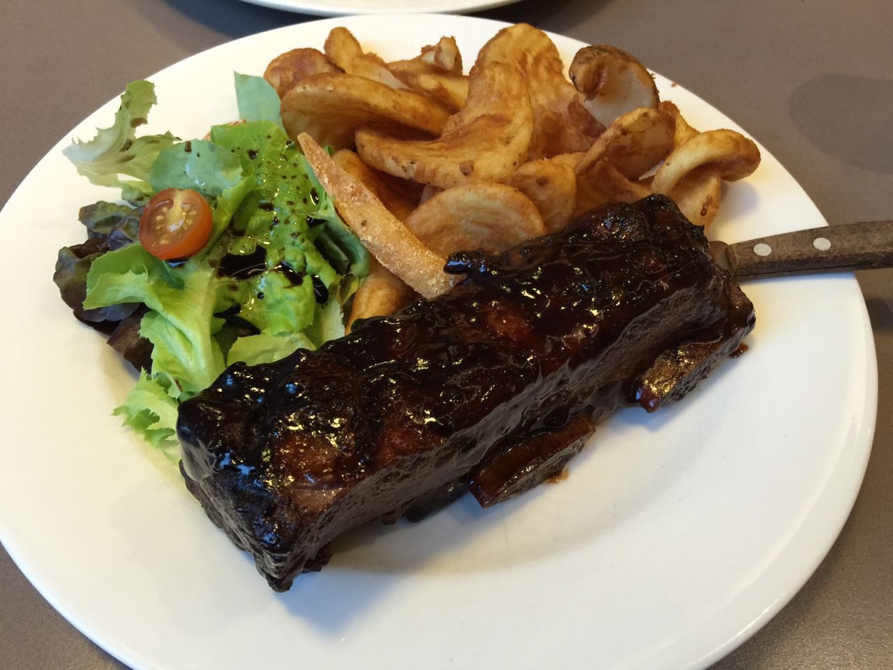 非常非常赞!位置比较不好找,离海边很近,跟着导航走,还是可以比较快的找到的。点了一份牛肋排beef rib,特别特别特别嫩,上面的烧烤酱,出乎意料的香,肉基本是轻轻一划就下来,太香了。牛排要的medium的,有一丝丝的血丝,但是不会嚼不烂,很大一块,特别香,不过酱汁也是单独收费的哦,澳洲都这样。最后的甜品选择的黑森林的pancake,太好吃了!pancake是巧克力味的,旁边放了樱桃,撒的巧克力酱,配上冰淇淋。pancake的热与冰淇淋的凉的撞击,加上樱桃的酸甜和巧克力的甜。这种感觉完全停不下来,虽然吃了很多肉肉特别撑了,可是仍然迅速吃完了。太好吃了!大赞这家店,庆幸黄金海岸有这家连锁。下次还会吃!