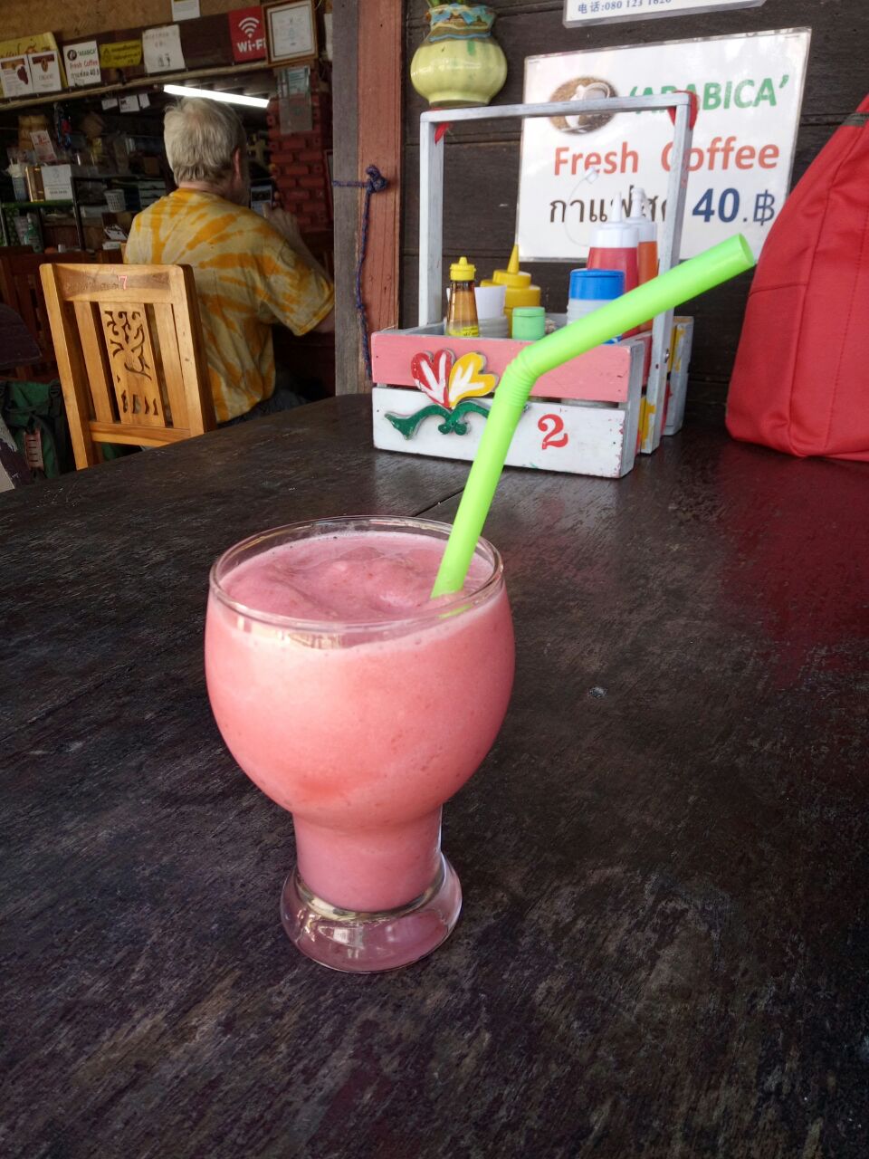位置很方便就在车站问口左面几步路的位置招牌应该是改了点名字有点不同了叫了点东西吃味道不辣的很合适我的口味那杯草莓冰沙我得赞一下不知是不是用新鲜的果肉放里面一起做的很鲜的草莓味叫的椰子咖喱什么鸡肉用料很足有鲜椰肉在里面的才150b加个饭就够两个小男人吃了
