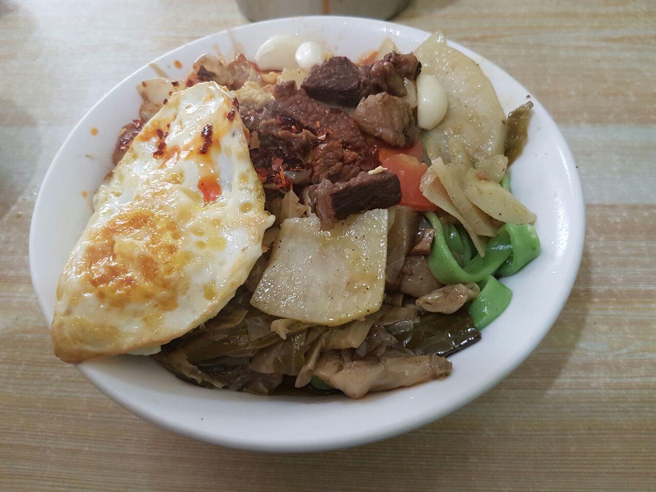 ...面,不折不扣的苍蝇馆子,口味是正宗西安喜欢的重口味,酱牛肉丁,配土豆、胡萝卜、莲花白、黄豆芽等坤坤专做菠菜面,不折不扣的苍蝇馆子,口味是正宗西安喜欢的重口味,酱牛肉丁,配土豆、胡萝卜、莲花白、黄豆芽等。后味麻麻有点孜然味,吃面配煎蛋,饱餐后喝碗面汤,西安叫“填缝”。