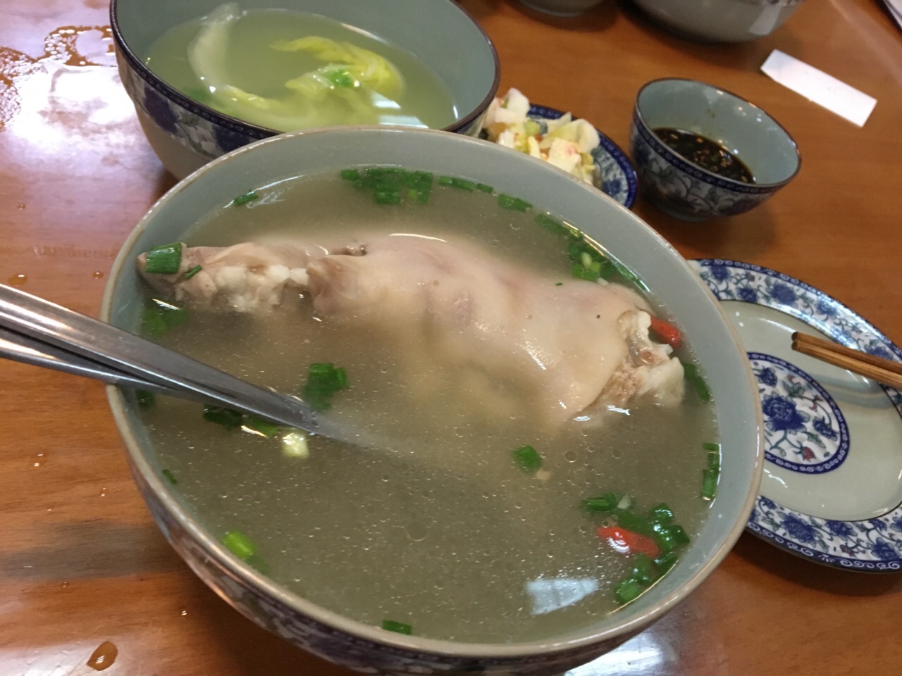 这家面只卖早上中午,下午就打烊休息了,生意很好,不需要挣钱那么辛苦这家面只卖早上中午,下午就打烊休息了,生意很好,不需要挣钱那么辛苦。素椒杂酱和牛肉面是最畅销口味,不能吃辣的也可以酸菜面或是清汤杂酱。别忘了来份蹄花,有股淡淡的药材味,美容养颜哦