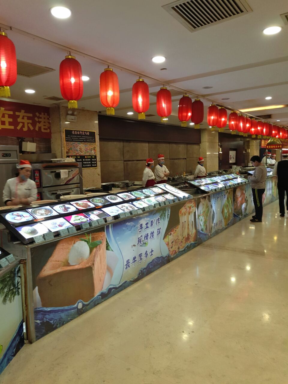 网友2016-12-28圣诞夜晚去吃了个夜宵,菜,汤,主食品种不少,口味还是不错的,每份数量不算大圣诞夜晚去吃了个夜宵,菜,汤,主食品种不少,口味还是不错的,每份数量不算大。除了可以到柜台自选,还有手推车来回巡走非常方便,当然高档饭店价格不菲。