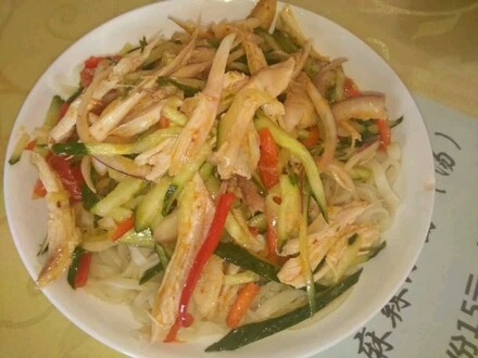 新疆的椒麻鸡,据说是四川带过来的口味,有点类似于广东的白切鸡,鸡皮是脆脆的,切好后和洋葱拌在一...新疆的椒麻鸡,据说是四川带过来的口味,有点类似于广东的白切鸡,鸡皮是脆脆的,切好后和洋葱拌在一起,味道还不错,这边的人经常去吃。