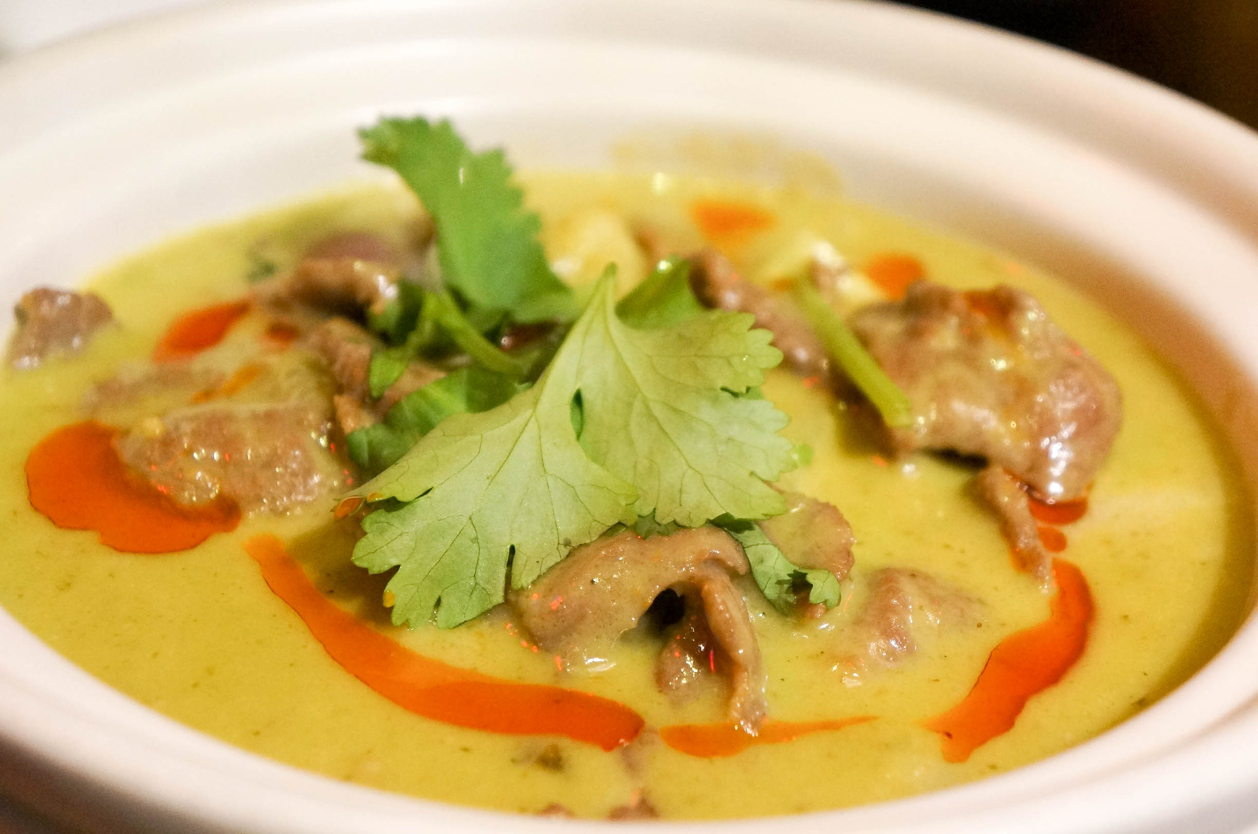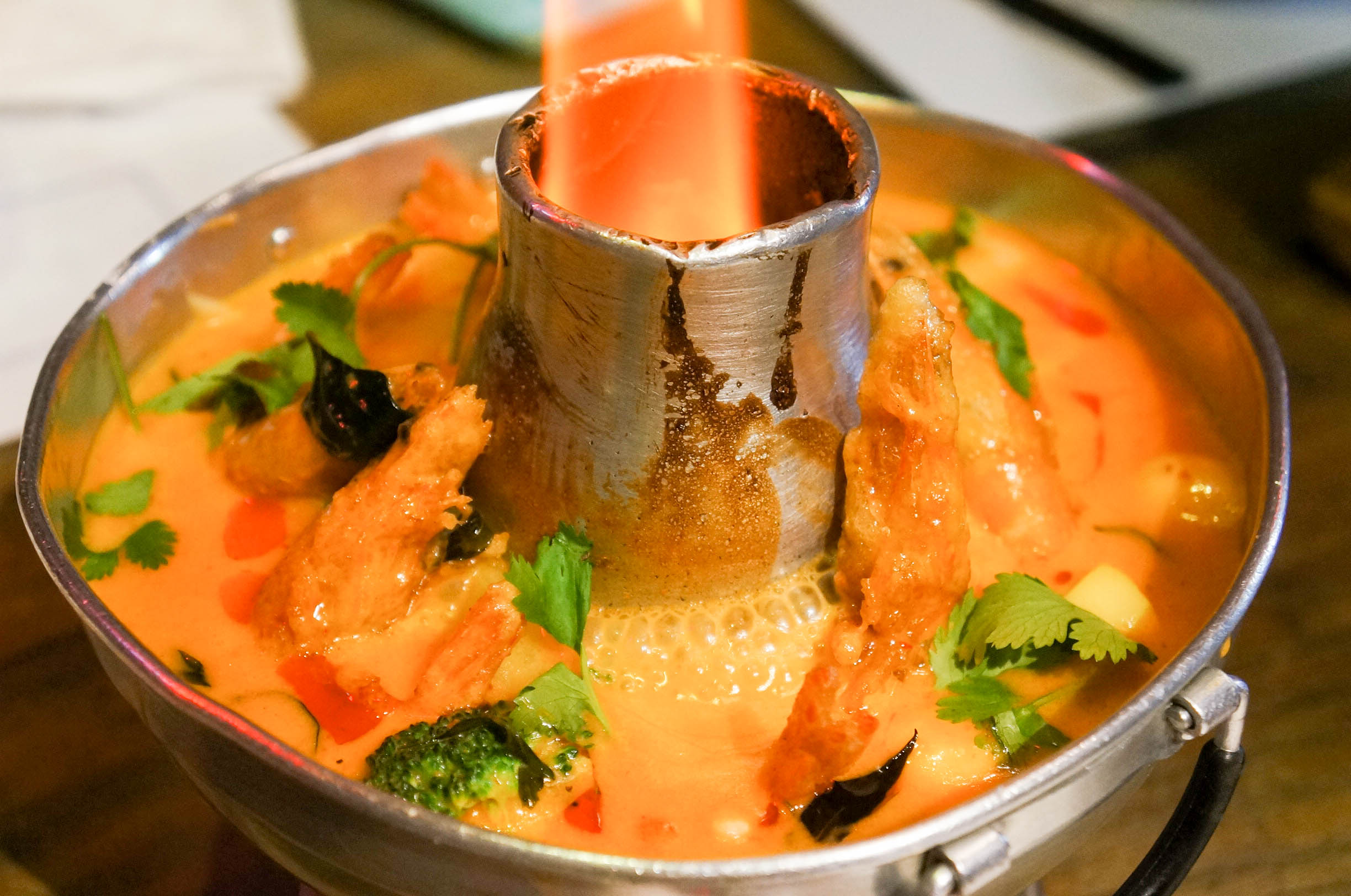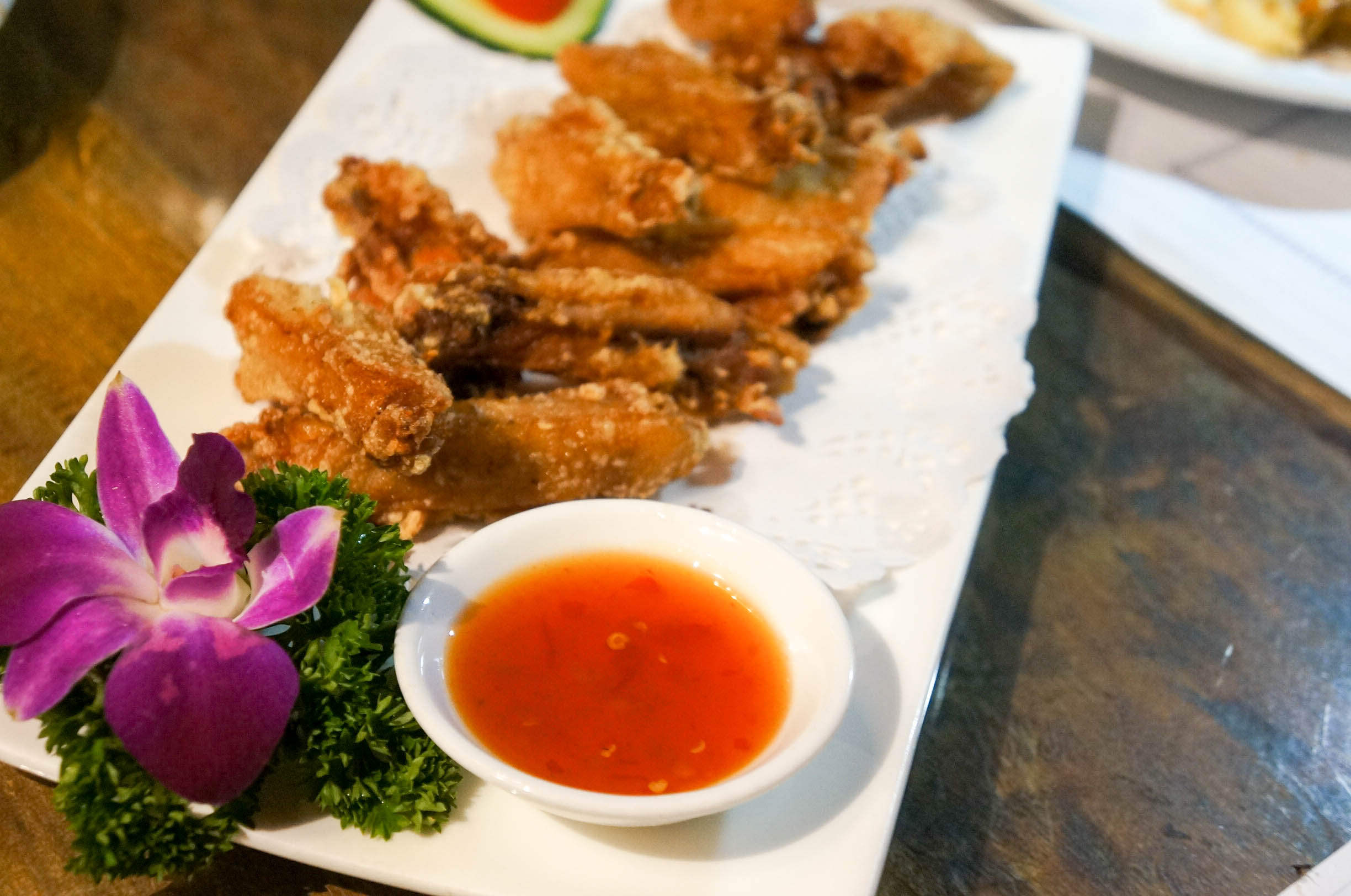自打去了东南亚旅游,一直对那的美食念念不忘,那香料,那咖喱,那酸爽的口味。 沙嗲大叔,印尼的沙嗲世家,南洋味,一进门,就被桌子所吸引,桌子透明的设计,透过玻璃就可以看到东南亚地区的几种辛香料,还很细致的配上了名字和详细的介绍,很是有特色的设计,吃个饭还可以长见识,不错不错。各色带有怀旧的装饰,更是让人回到过去,怀旧风浓郁。 大土豪沙拉 沙拉酱有点咸,配上苹果,柚子,黄瓜,还有肉串。 咖喱皇炒蟹,海蟹特有的香气加上咖喱,实在可口,蟹肉很是鲜甜。打上一碗香香的泰国米饭,瞬间就可以见到碗底,咖喱入味到螃蟹里,入味,米饭浸润了咖喱后,变得透明,好吃,实在很赞! 泰式无骨凤爪 鸡爪经去骨冰镇处理更是爽脆可口,相当的开胃。 泰式生腌虾 口感很好,酸辣汁去掉了虾的腥味,虾肉的鲜甜,脆爽,冰冰的,很舒服。 眀炉青柠桂花鱼 鱼肉散发出一股特别的清香,配合大蒜、辣椒与青柠檬,口感细腻糯滑又不失清香。 娘惹吊烧鸡 鸡肉很嫩,外皮嫩滑,迅速入肚,真心美味。 黑胡椒炸虾 红咖喱海鲜什锦 精巧的小炉子,火光掩映着,锅类似小火锅,中间可以点火加热,虾肉的食材新鲜,口感好,微带些酸,带些甜,很是开胃。咖喱浓香,配上米饭, 泰式一只骨肉骨茶 泰式椰汁西米糕 泰餐中最经典最有标志性的甜点,西米糕是装在香兰叶叠成小碗里,绿白相间,清新雅致。 青咖喱牛腩 味道独特,香香的,微微带些辣,牛腩份量不少。 烧烤大拼 有烤翅、烤虾、肉串、烤青鱼,味道很好,烧虾,外壳酥脆,微带酸甜,一串串的,果酱的特殊处理,去掉虾的腥味,外壳炸过,都可以吃掉,酥脆的口感,很香。肉串要趁热吃,酱料味道还不错。烤青鱼,入味,烤得刚好,鱼皮酥脆,鱼肉很香。烤翅,烤得很嫩,外酥里嫩。 整体感觉,菜都是正宗南洋口味,精细,味道好。