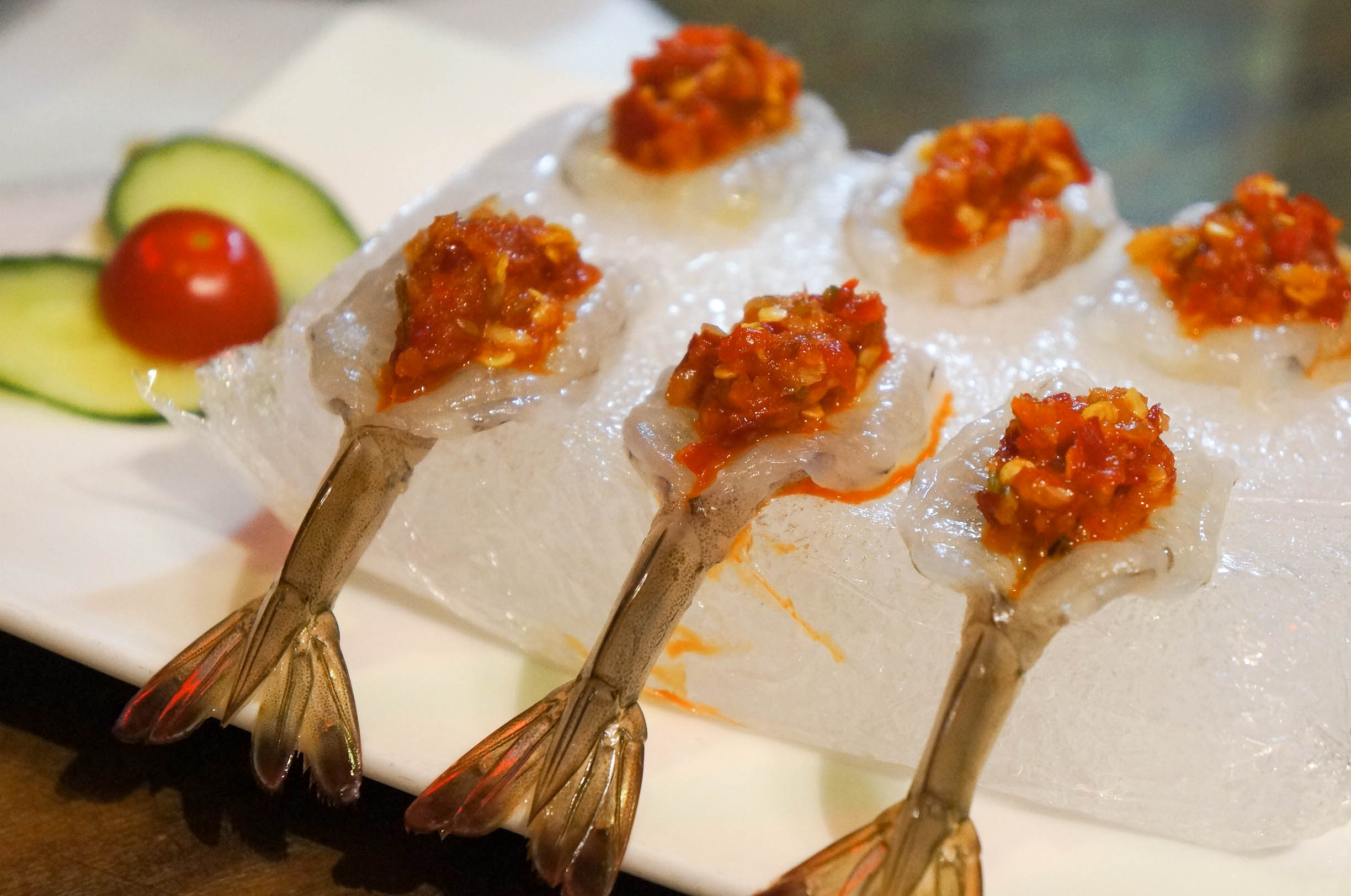 泰式生腌虾 口感很好,酸辣汁去掉了虾的腥味,虾肉的鲜甜,脆爽,冰冰的,很舒服